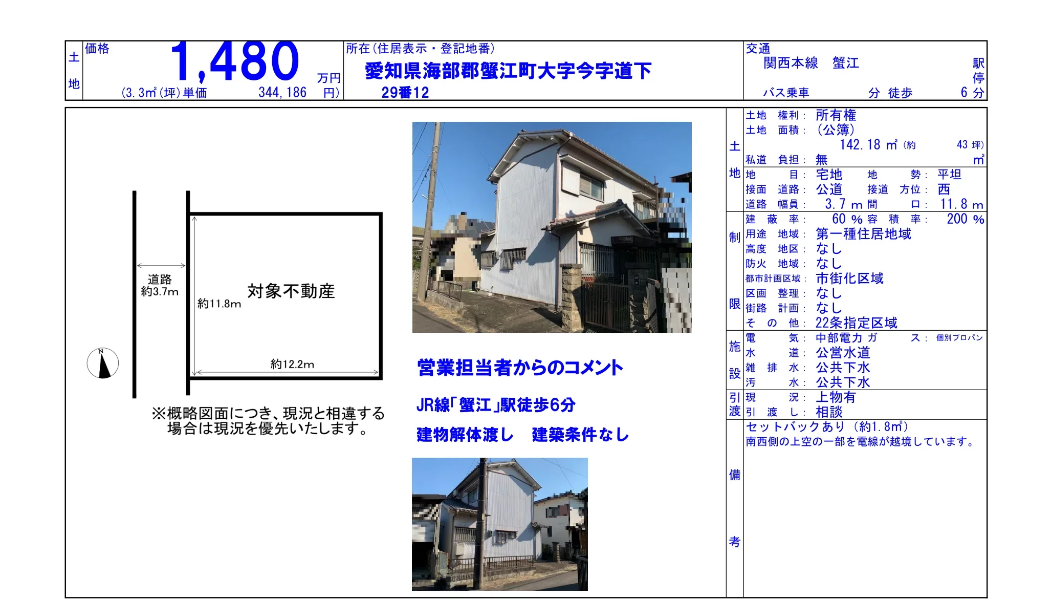 所在地愛知県海部郡蟹江町大字今字道下29番12