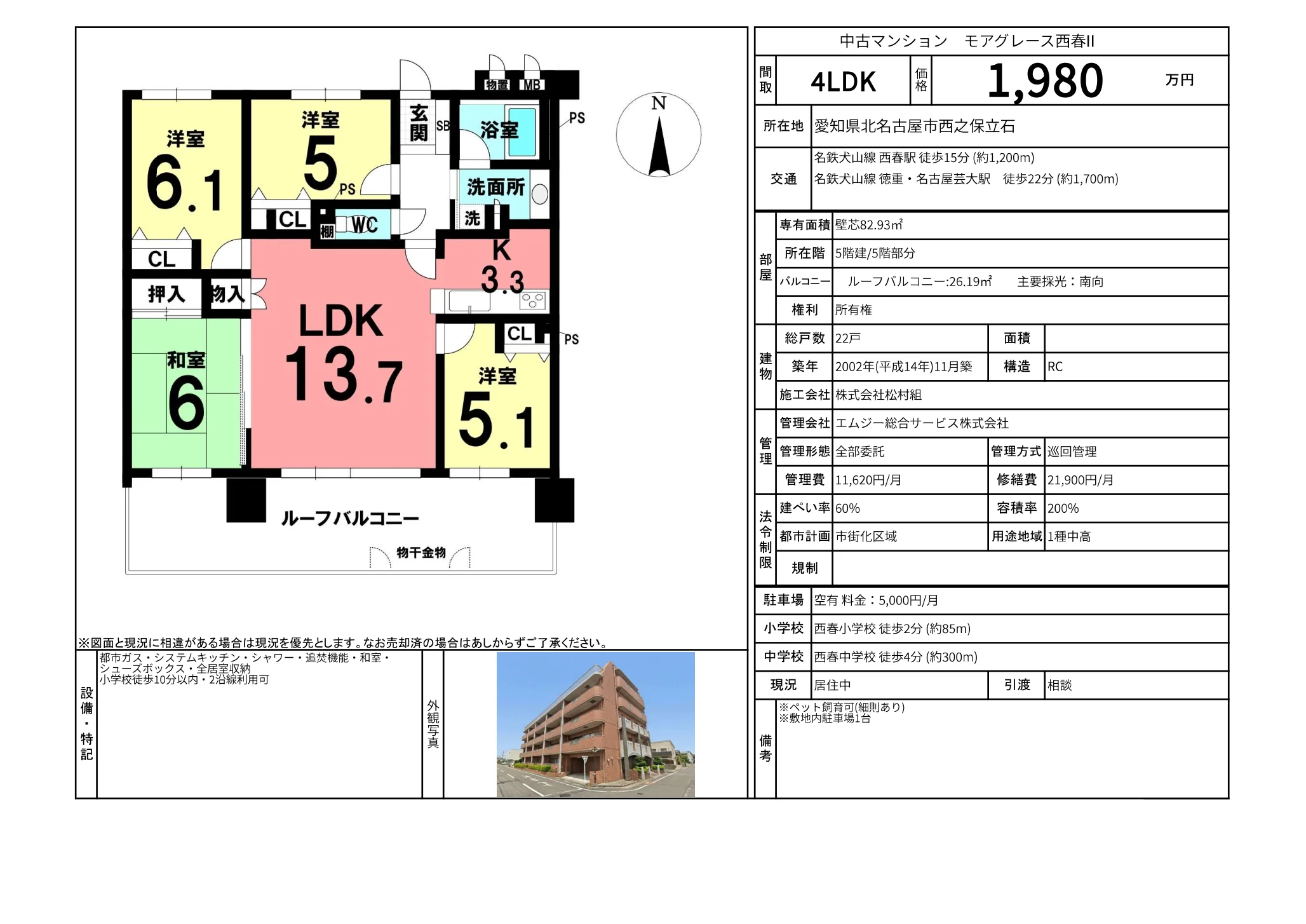 | アクセス | 西春駅 (徒歩15分) 徳重・名古屋芸大駅 (徒歩22分) |