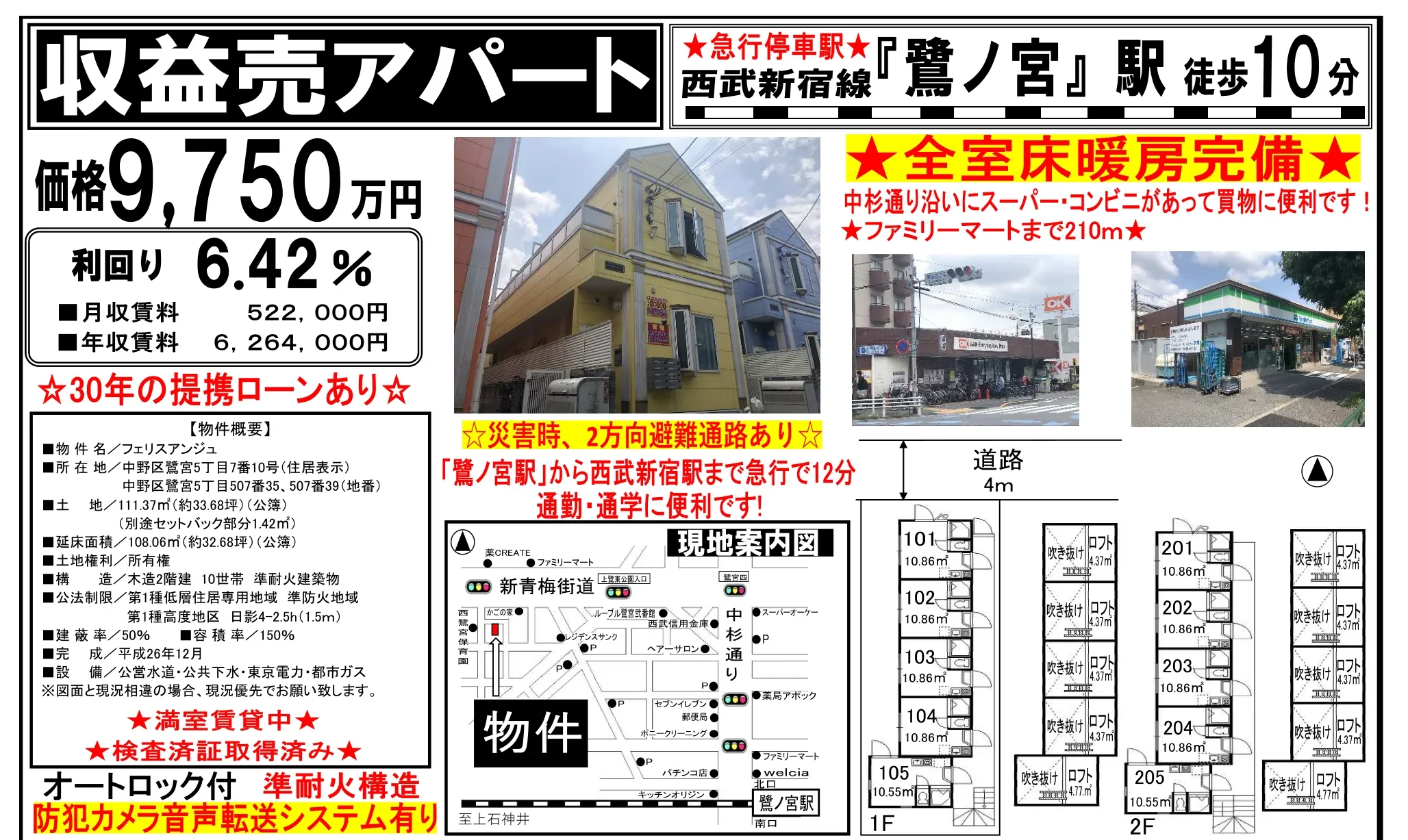 鷺ノ宮駅 (徒歩10分)