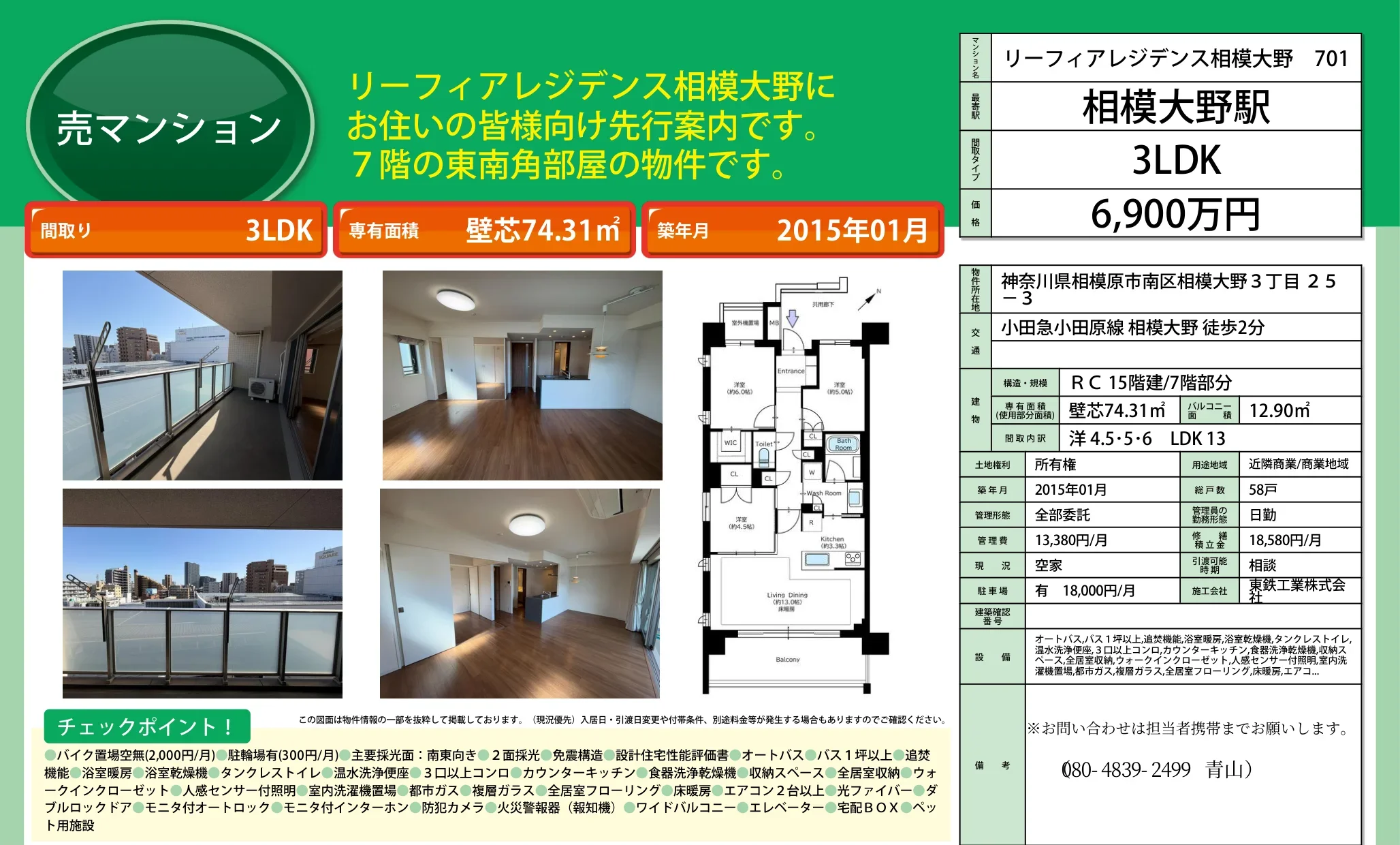 | 物件名 | リーフィアレジデンス相模大野 701 |