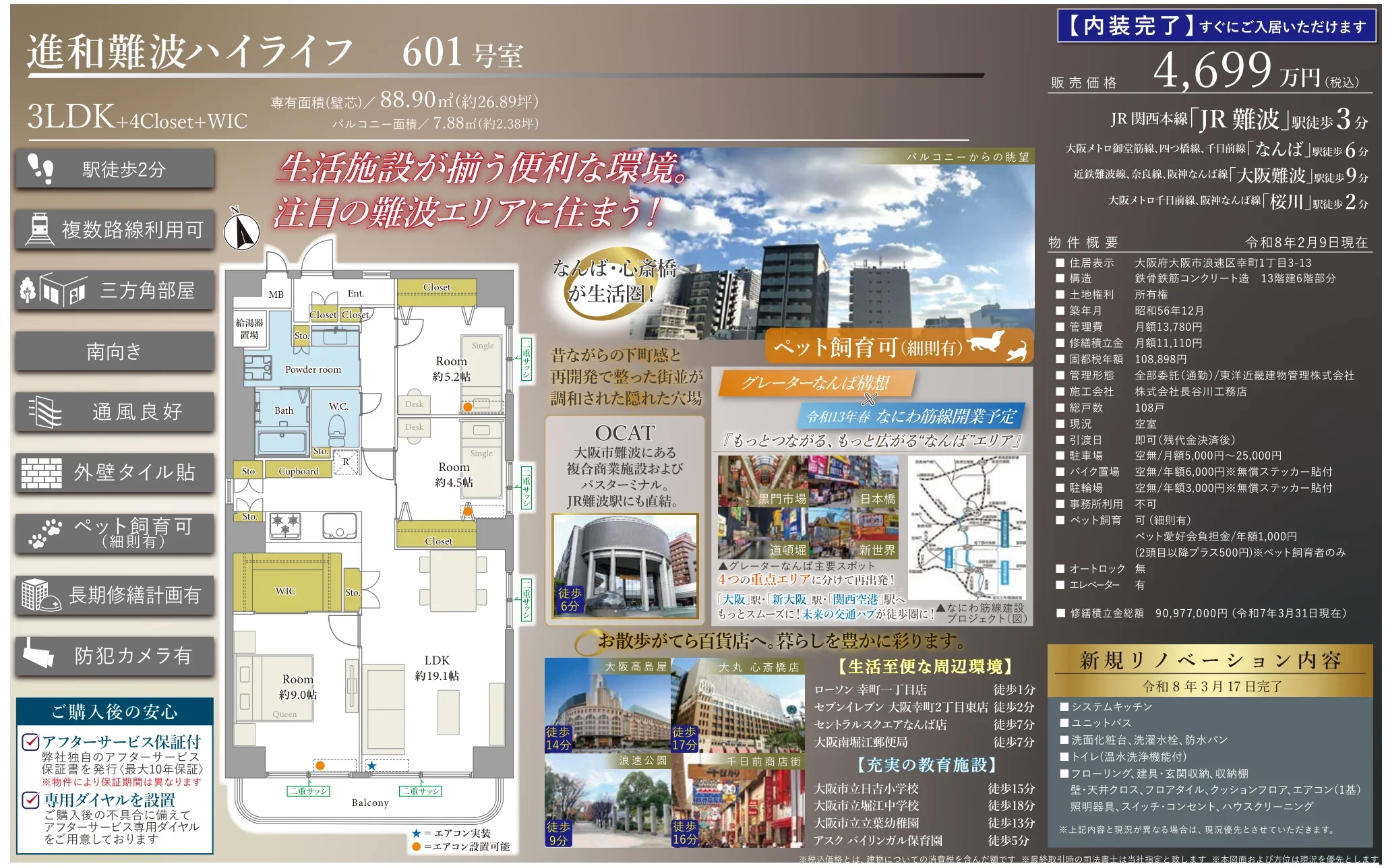 | 建物名 | 進和難波ハイライフ 601 号室 |