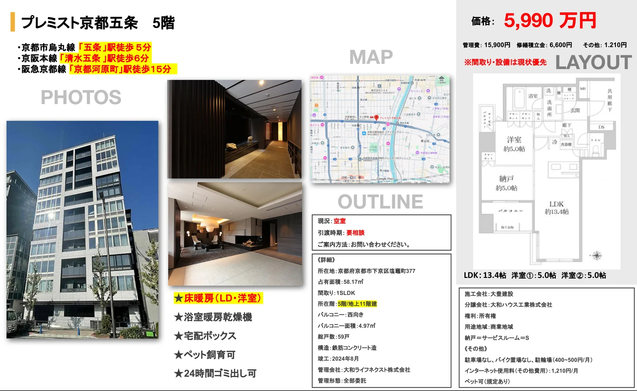| アクセス | 五条 (徒歩5分) 清水五条 (徒歩6分) 京都河原町 (徒歩15分) |