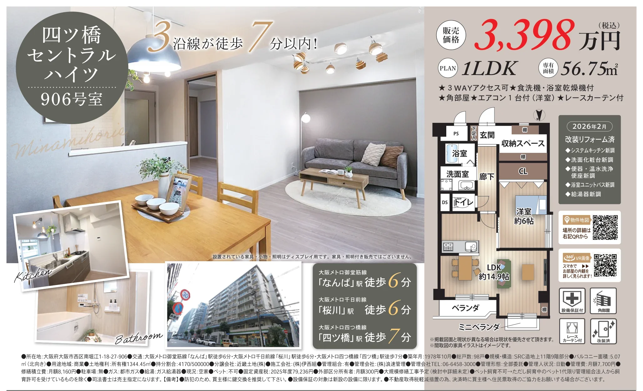 | アクセス | なんば (徒歩6分) 桜川 (徒歩6分) 四ツ橋 (徒歩7分) |