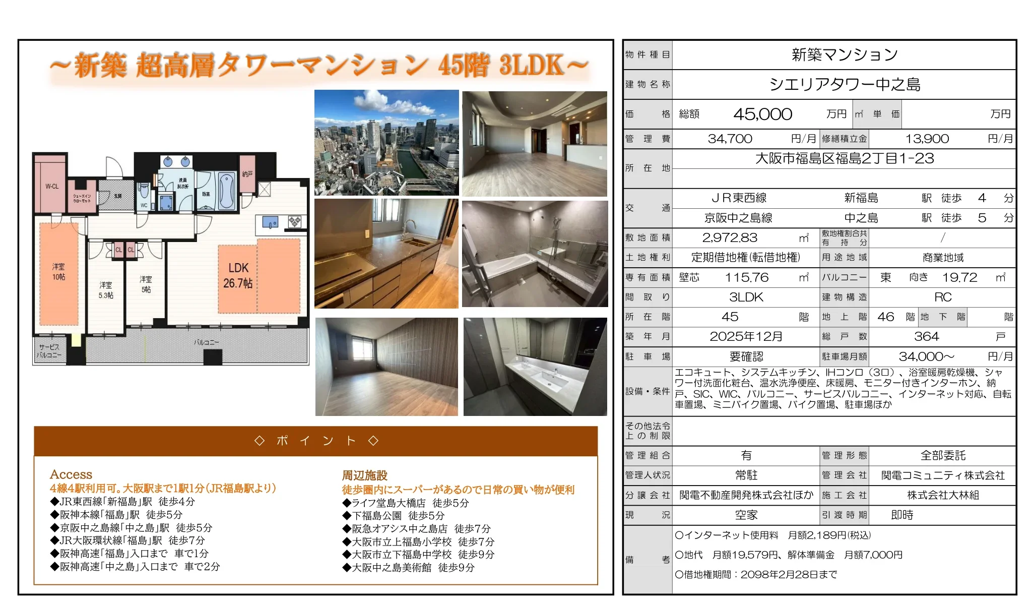 | 物件名 | シエリアタワー中之島 |