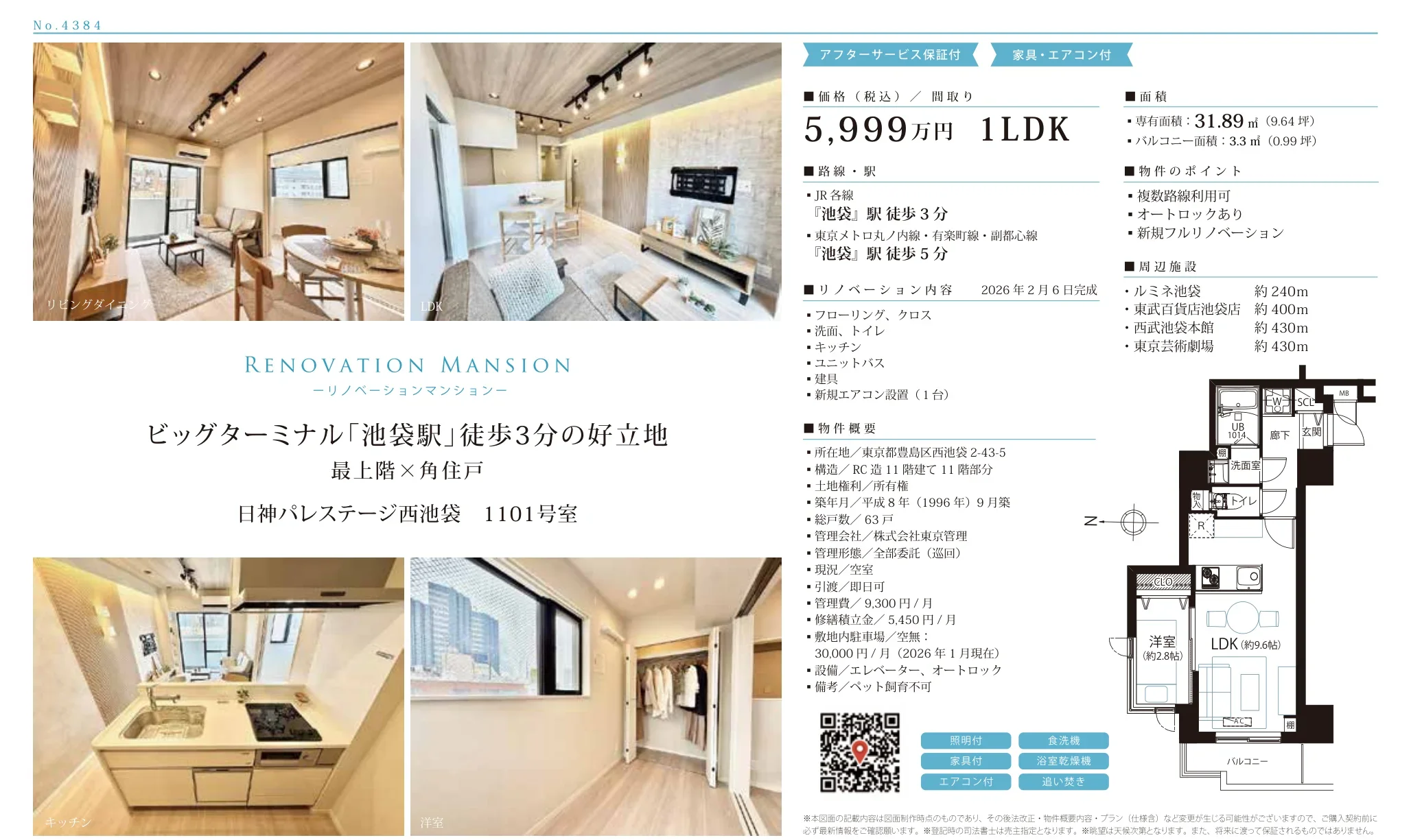 | 物件名 | 日神パレステージ西池袋 1101号 |