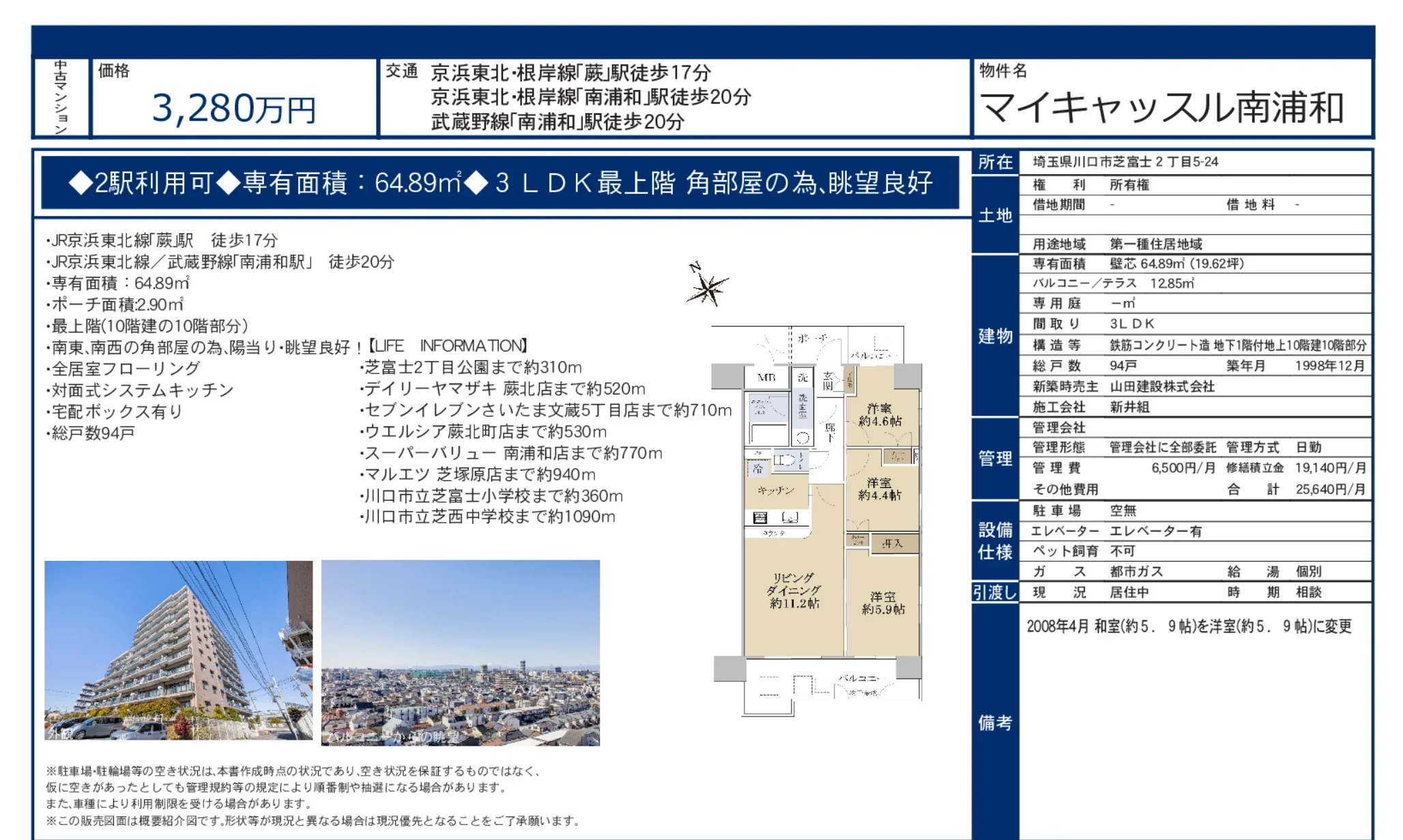 | アクセス | 蕨駅 (徒歩17分) 南浦和駅 (徒歩20分) 南浦和駅 (徒歩20分) |
