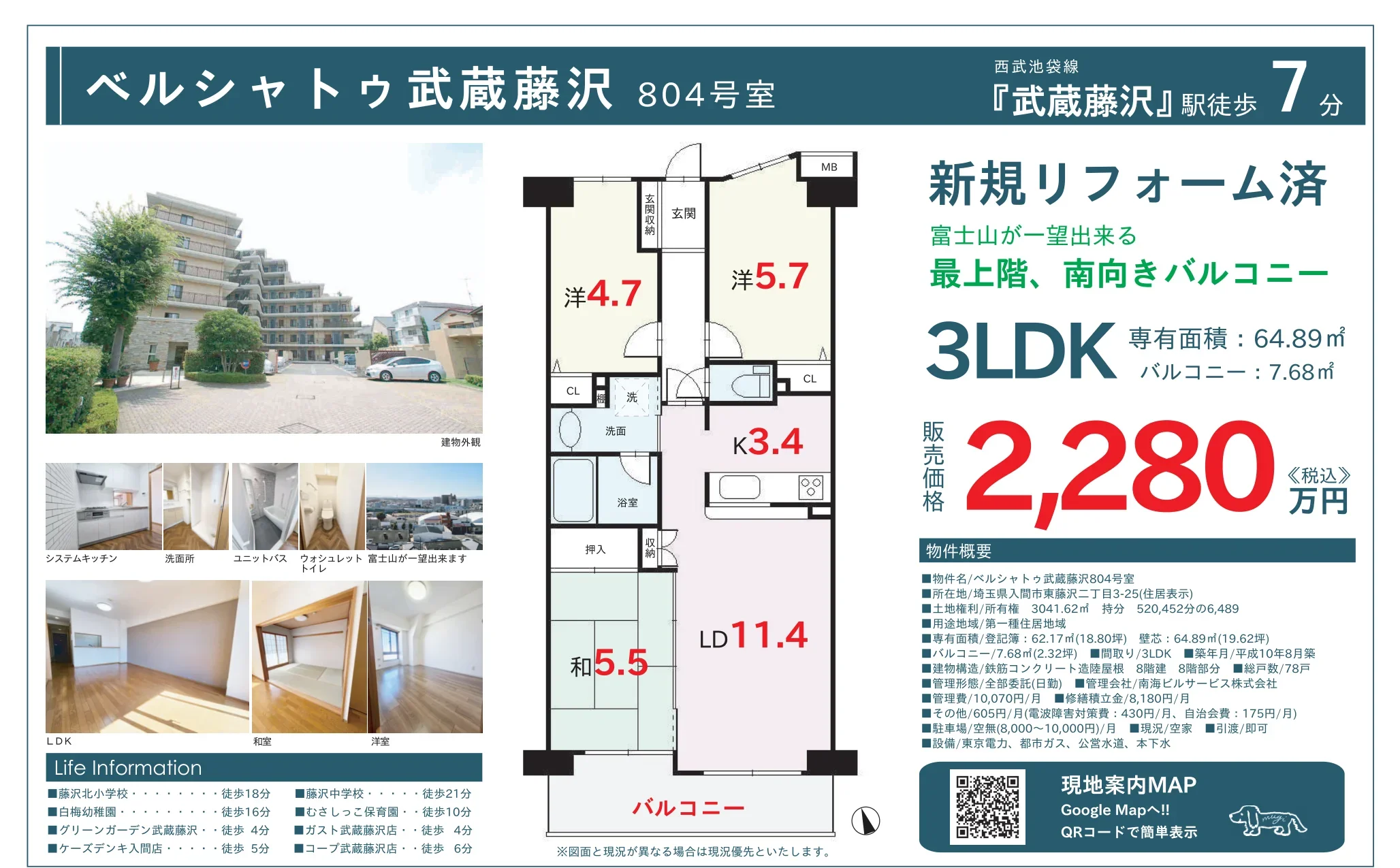 | 物件名 | ベルシャトゥ武蔵藤沢 804号室 804号 |