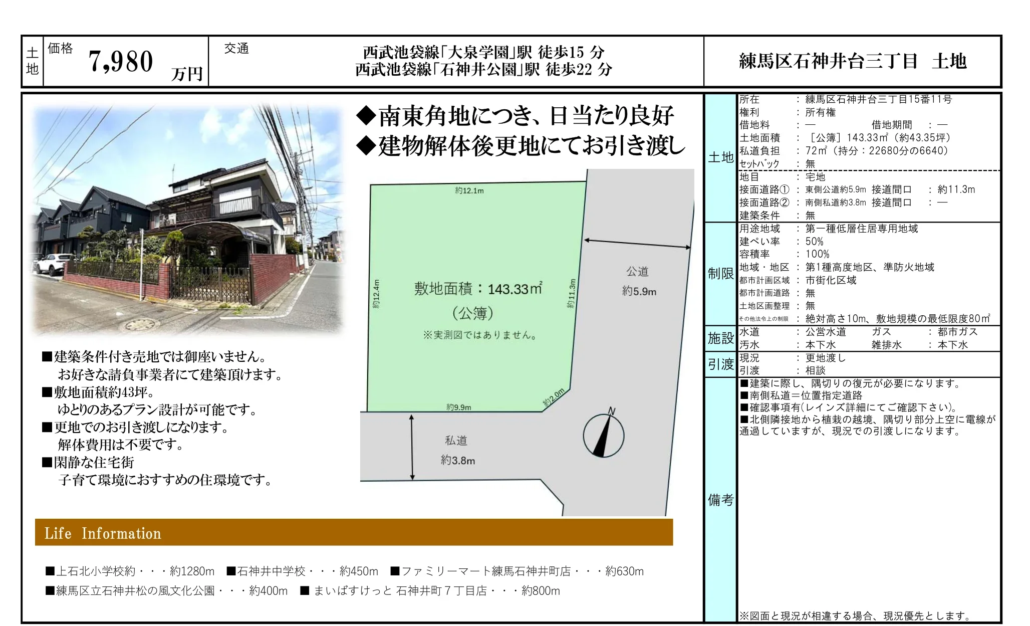 | 引渡時期 | 更地渡し |