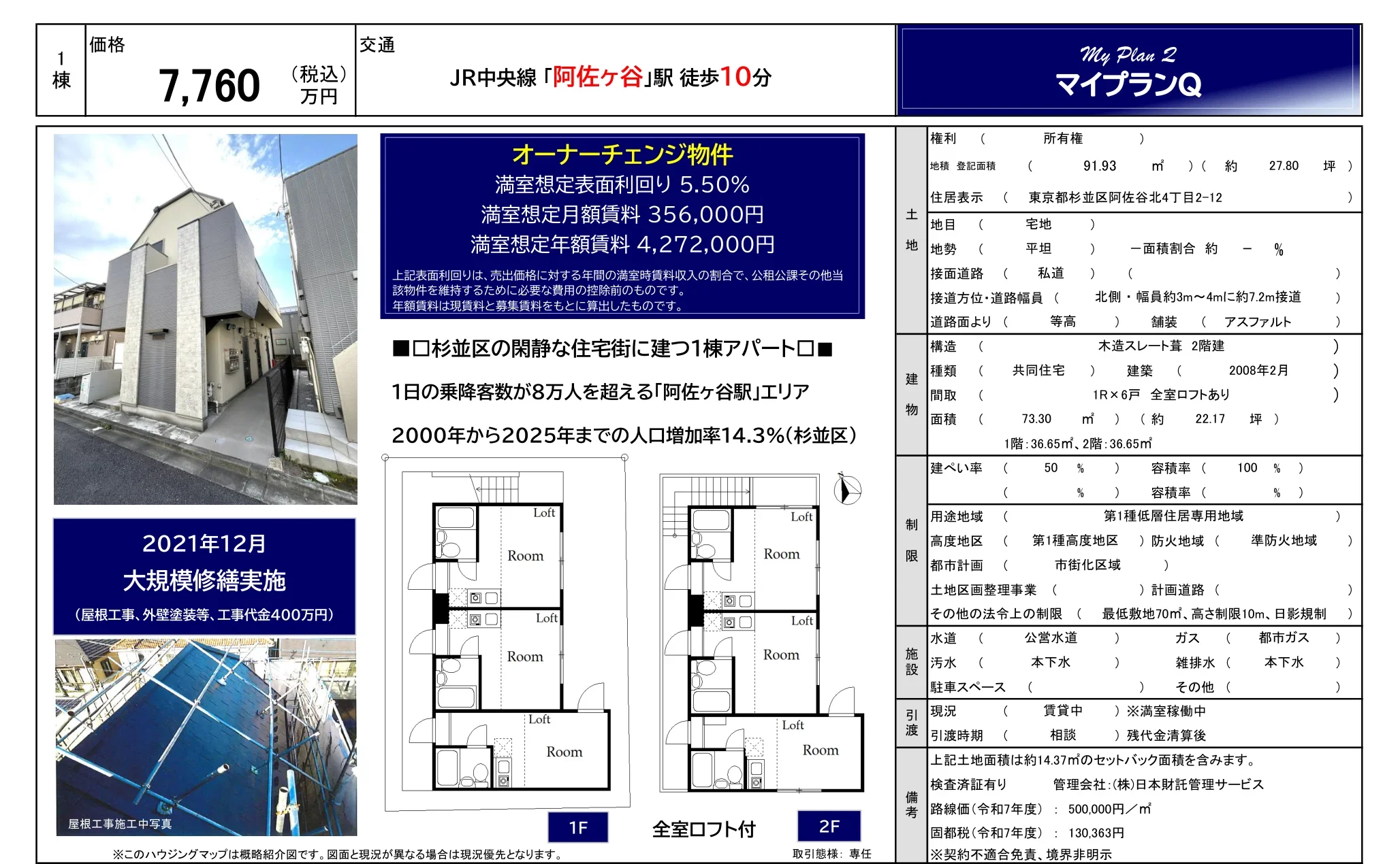 | 物件名 | 阿佐ヶ谷駅エリア 1棟アパート |