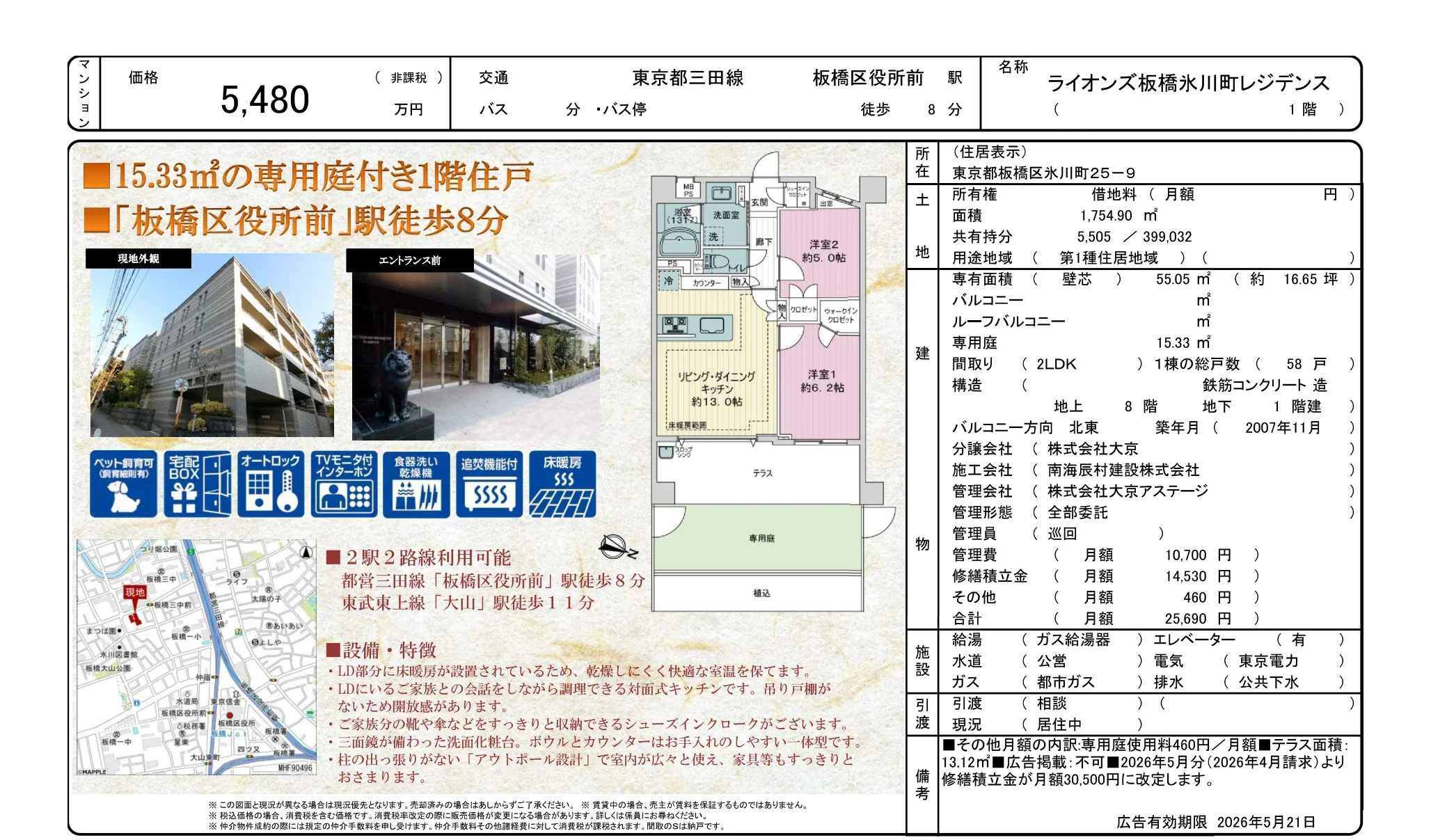 | 物件名 | ライオンズ板橋氷川町レジデンス 1階 |