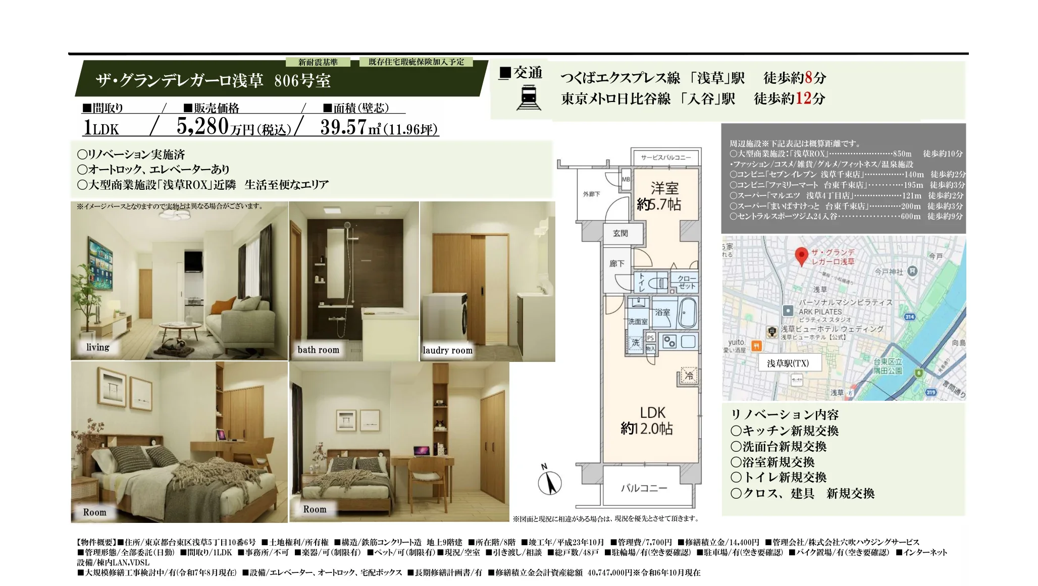 | 物件名 | ザ・グランデレガーロ浅草 806号 |