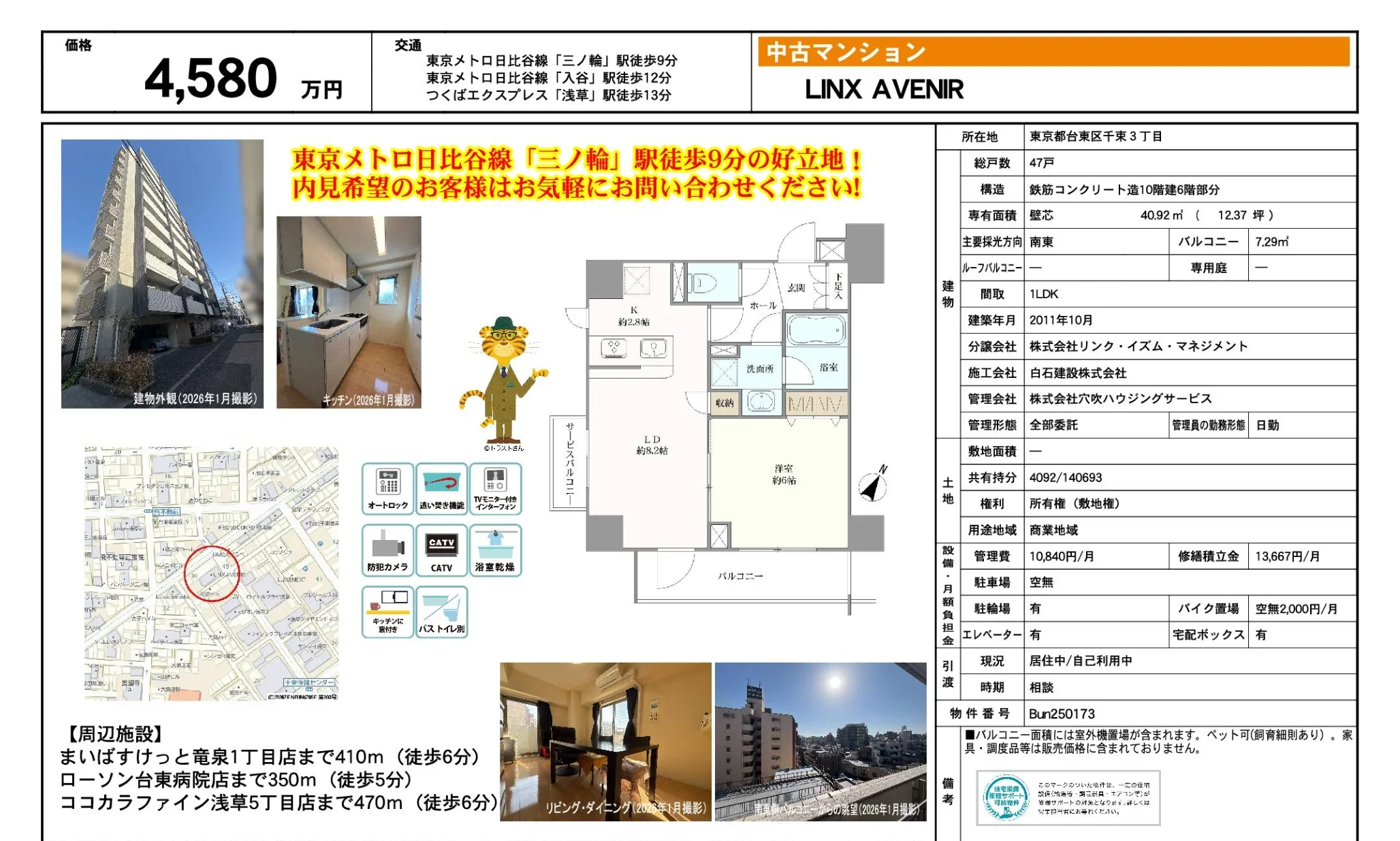 | アクセス | 三ノ輪 (徒歩9分) 入谷 (徒歩12分) 浅草 (徒歩13分) |