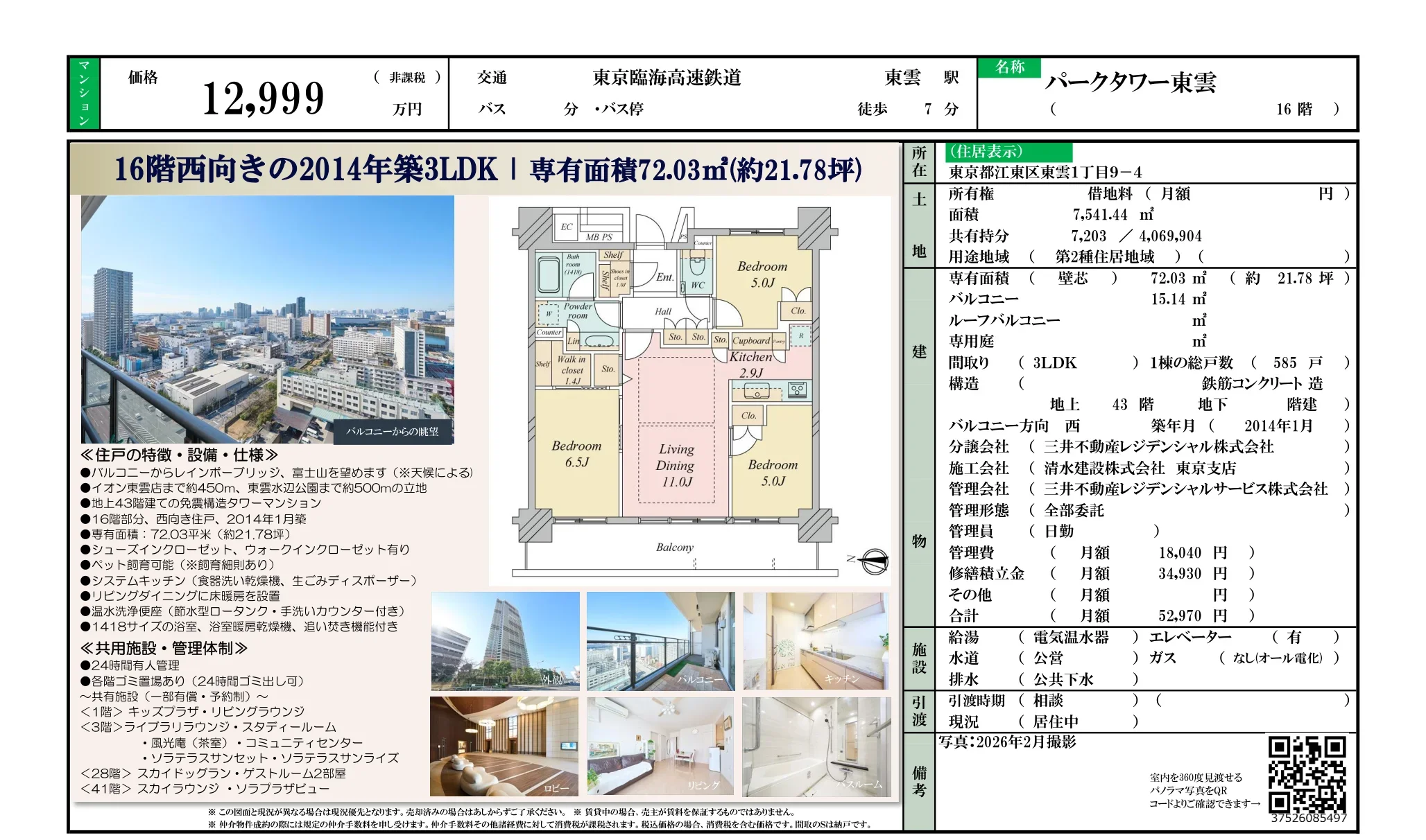 | 物件名 | パークタワー東雲 |
