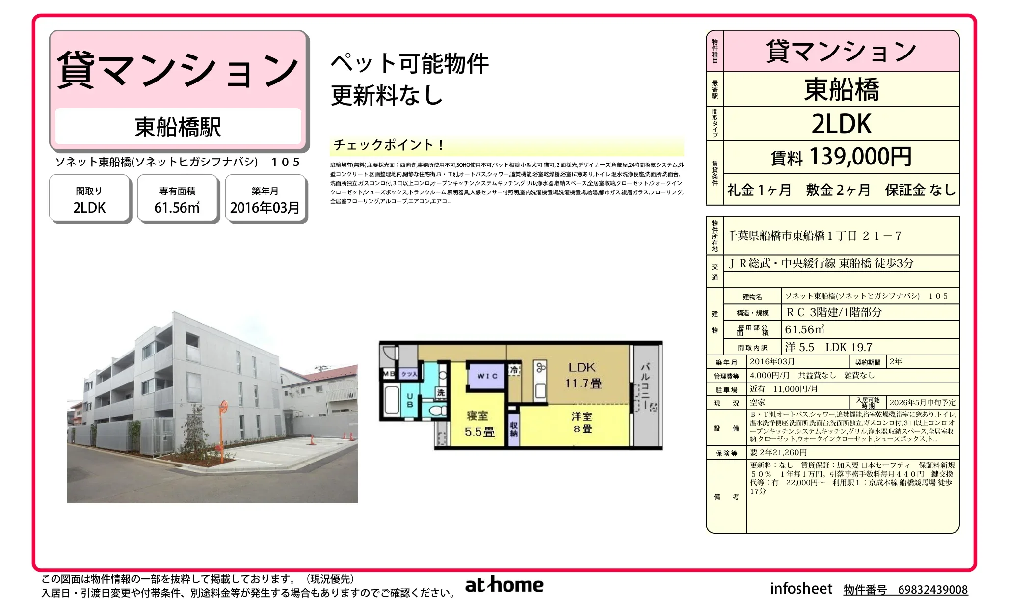 | アクセス | 東船橋 (徒歩3分) |