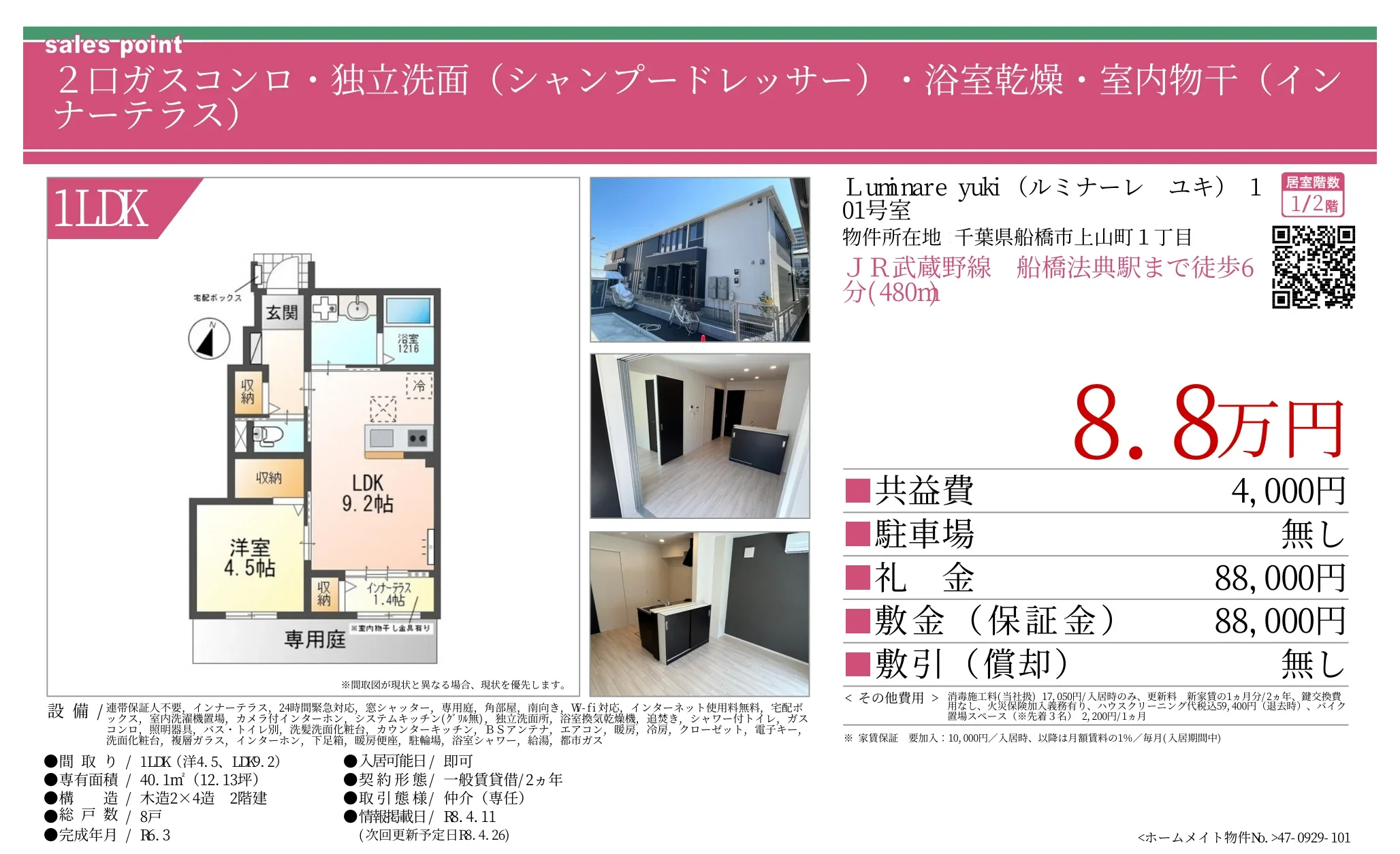 | 礼金 | 88000 |