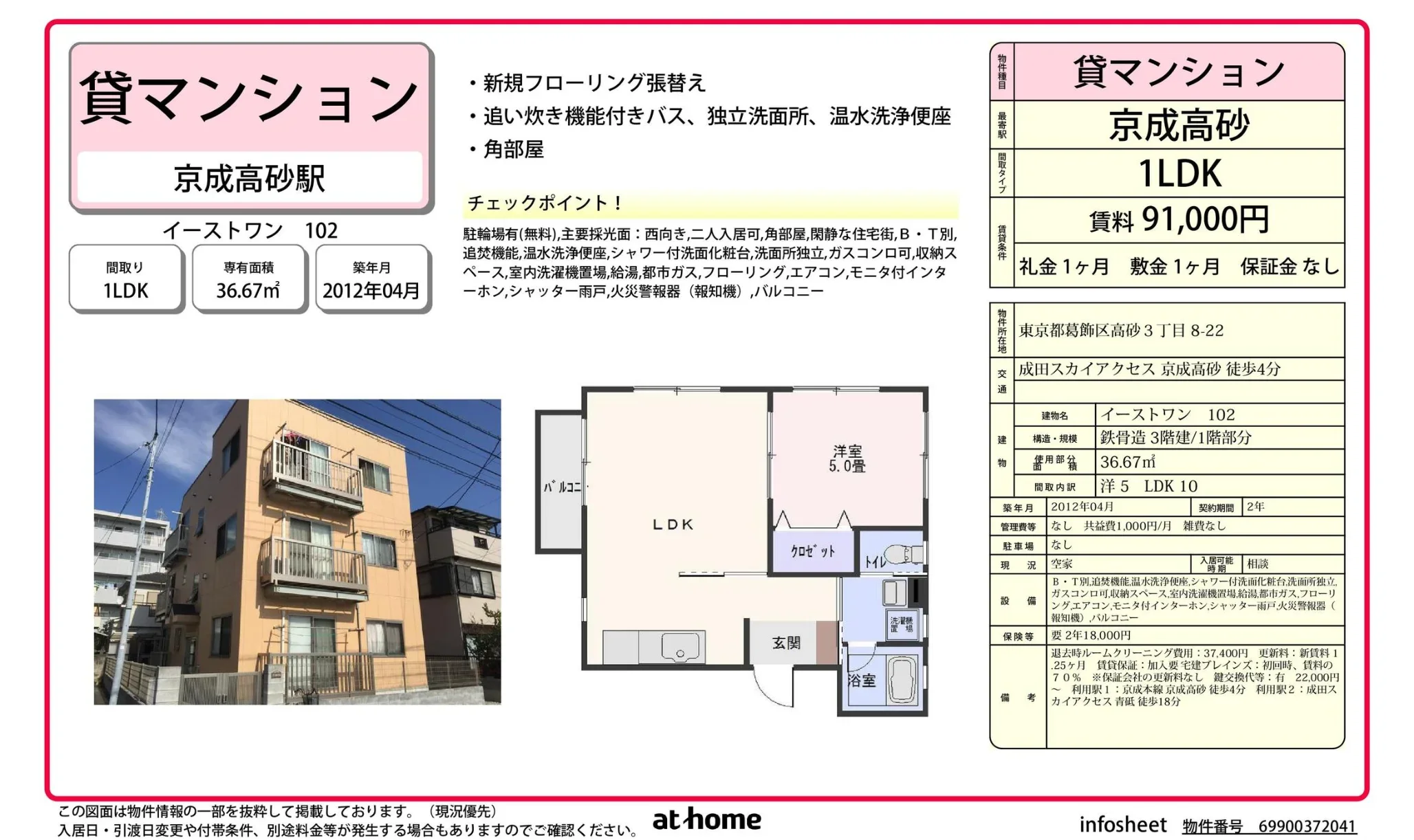 | アクセス | 京成高砂 (徒歩4分) 青砥 (徒歩18分) |