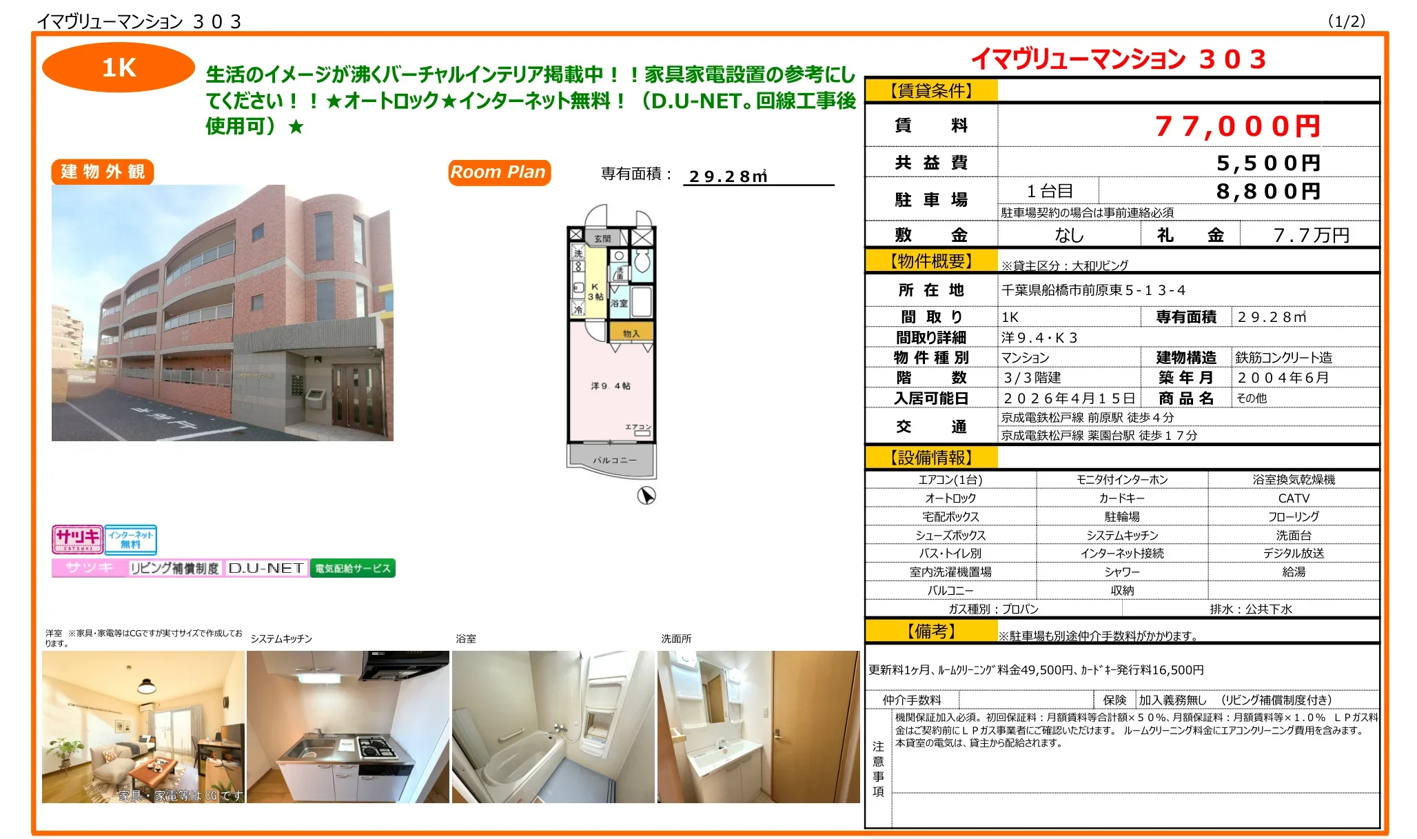 | 礼金 | 77000 |