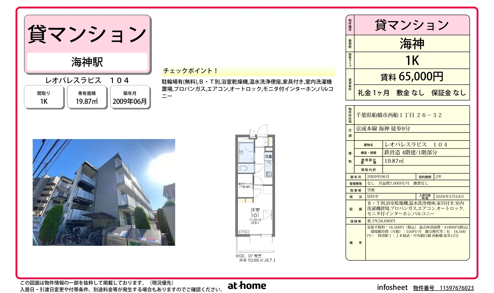 | アクセス | 海神 (徒歩9分) 西船橋 (徒歩12分) |