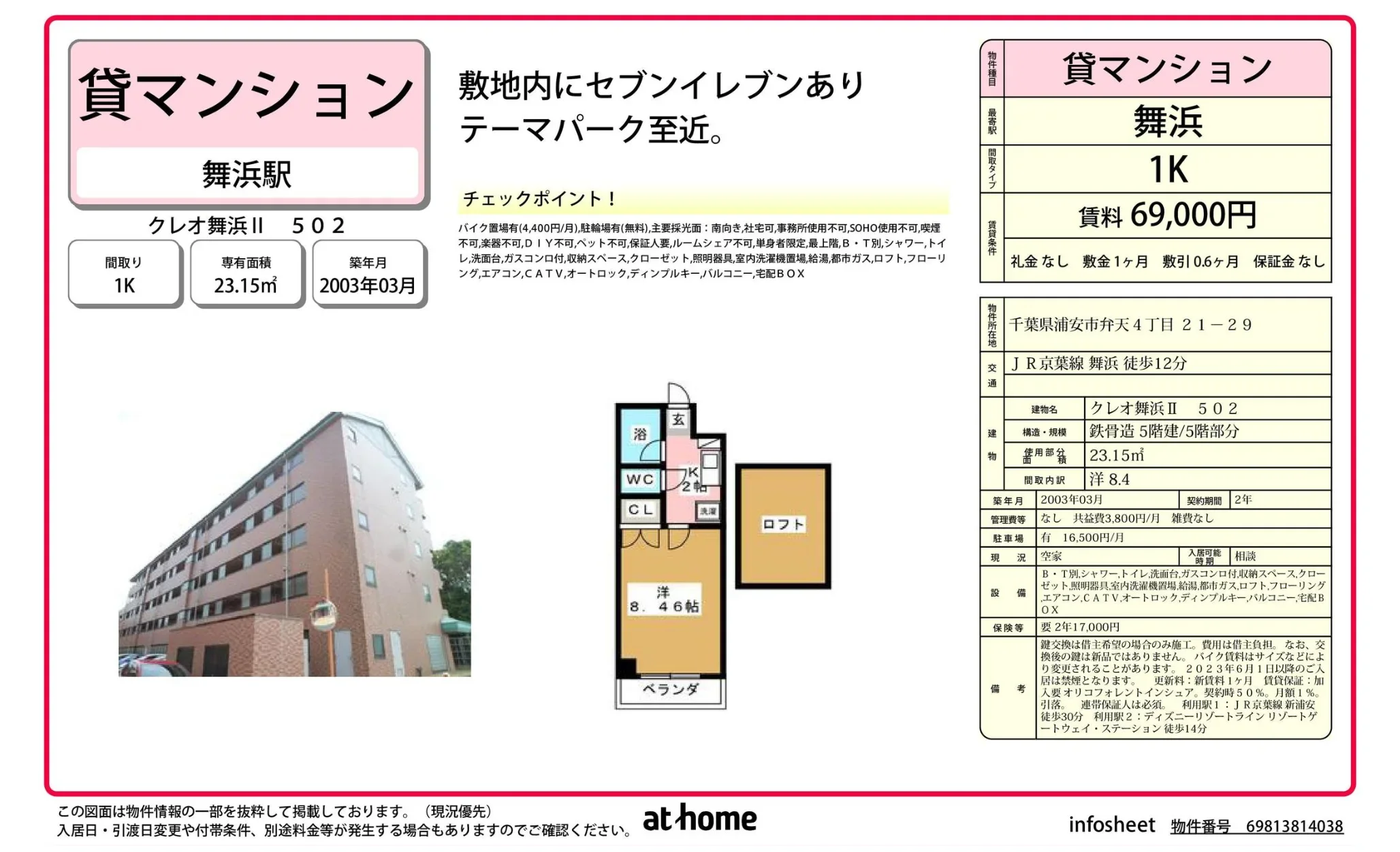 | 建物名 | クレオ舞浜Ⅱ 502 |