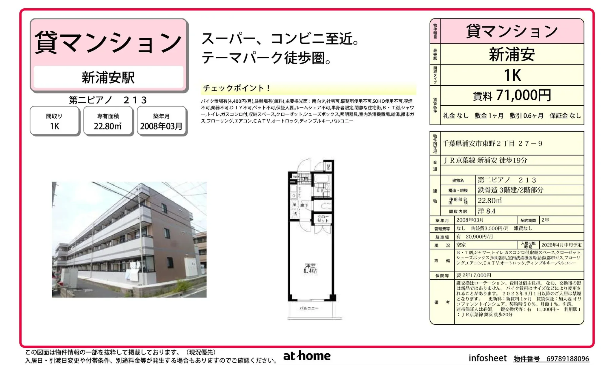 | アクセス | 新浦安 (徒歩19分) |