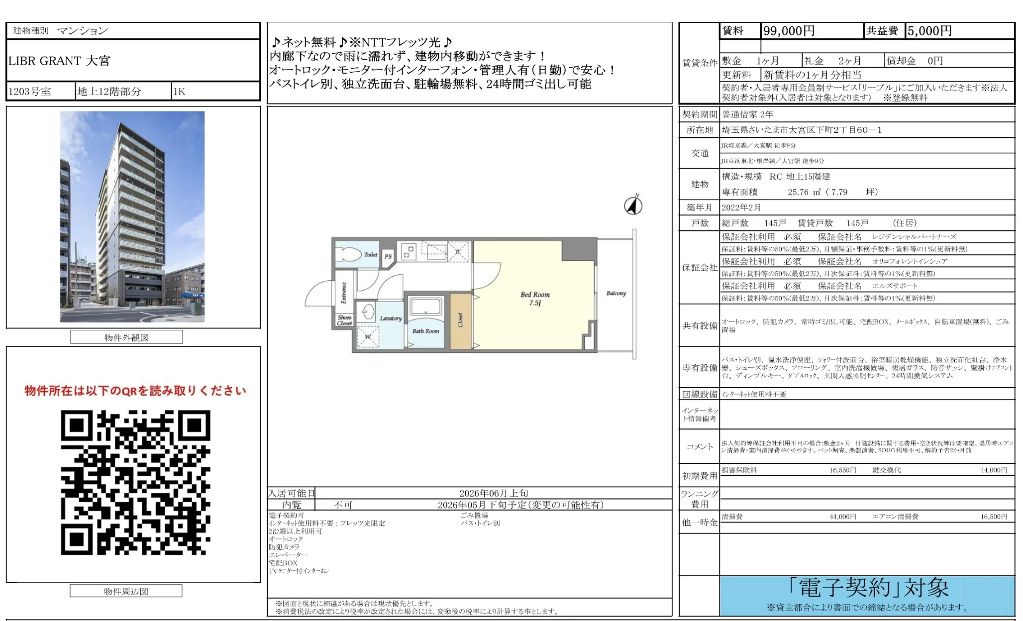 | 物件名 | LIBR GRANT 大宮 1203号 |