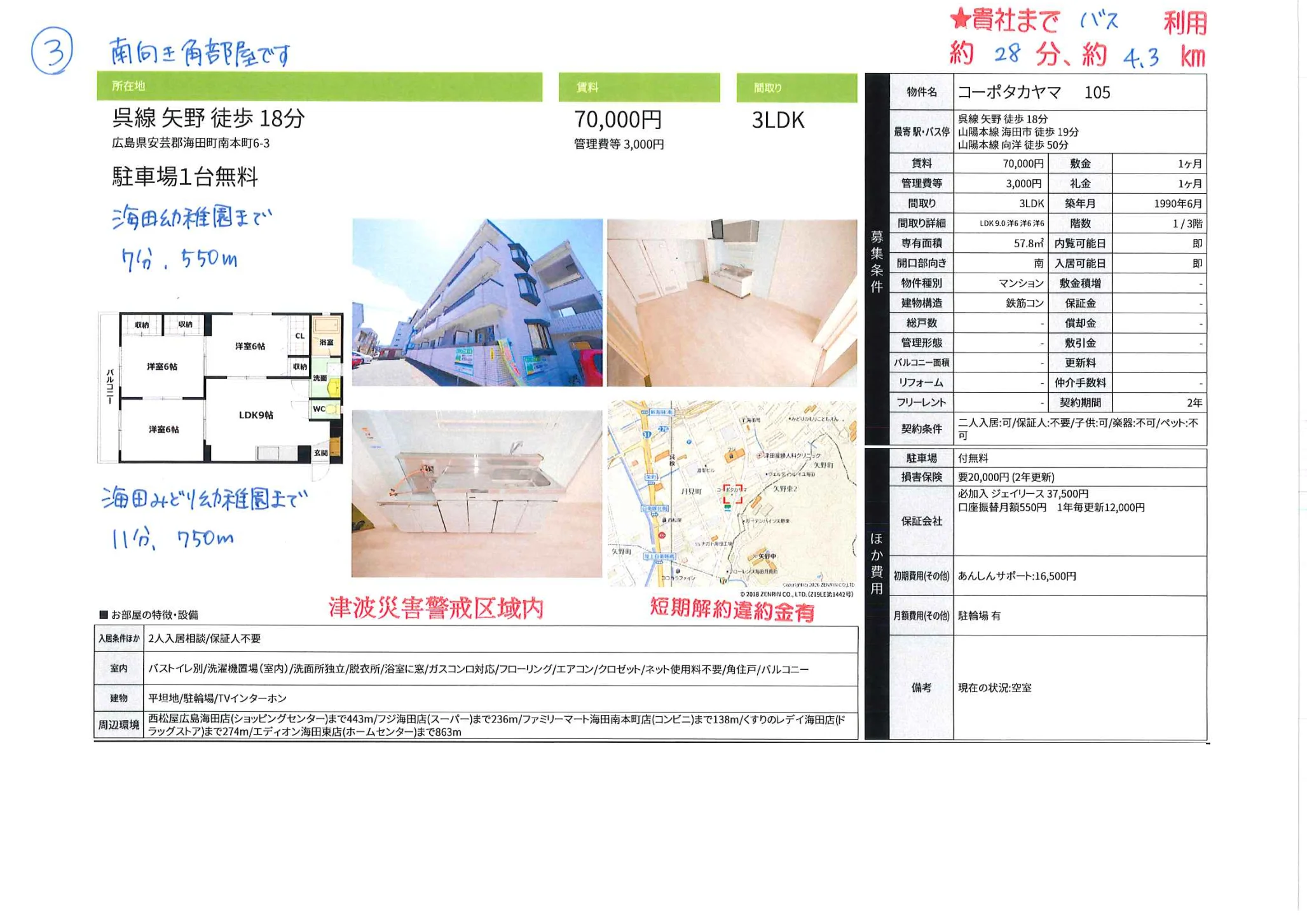 | アクセス | 矢野 (徒歩18分) 海田市 (徒歩19分) 向洋 (徒歩50分) |