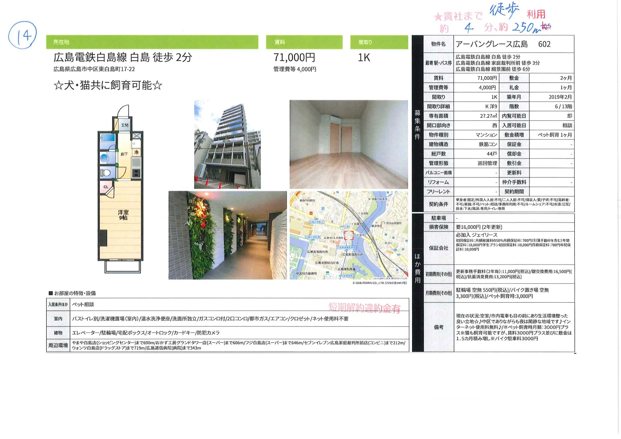 | アクセス | 白島 (徒歩2分) 家庭裁判所前 (徒歩3分) 縮景園前 (徒歩6分) |