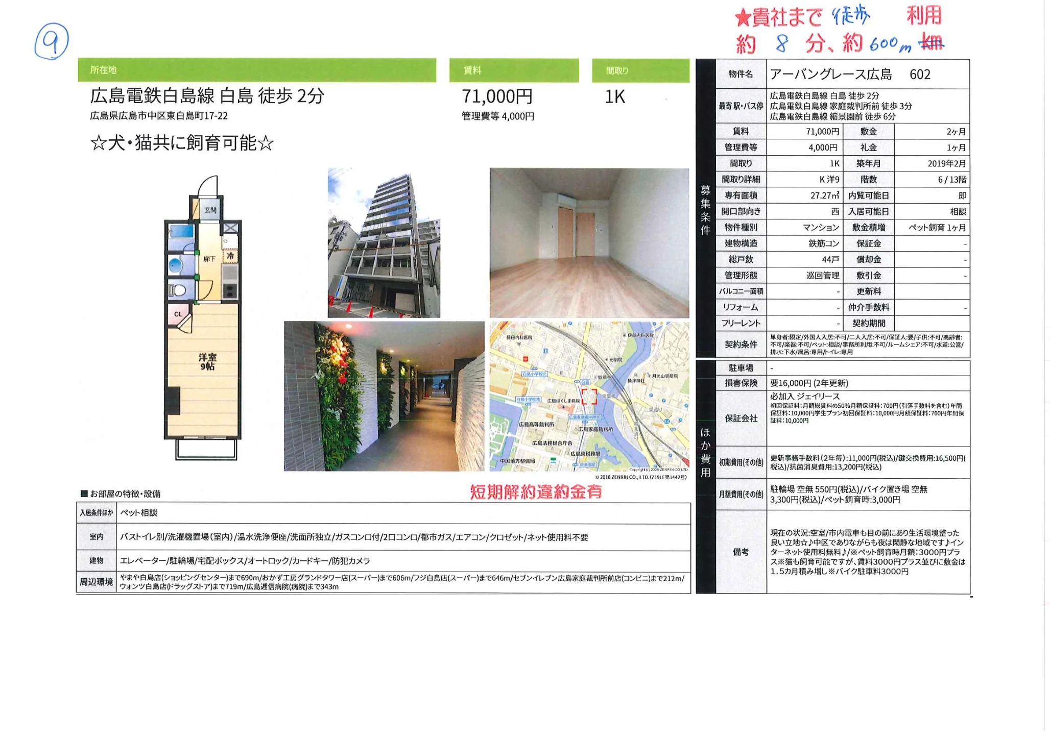 | アクセス | 白島 (徒歩2分) 家庭裁判所前 (徒歩3分) 縮景園前 (徒歩6分) |