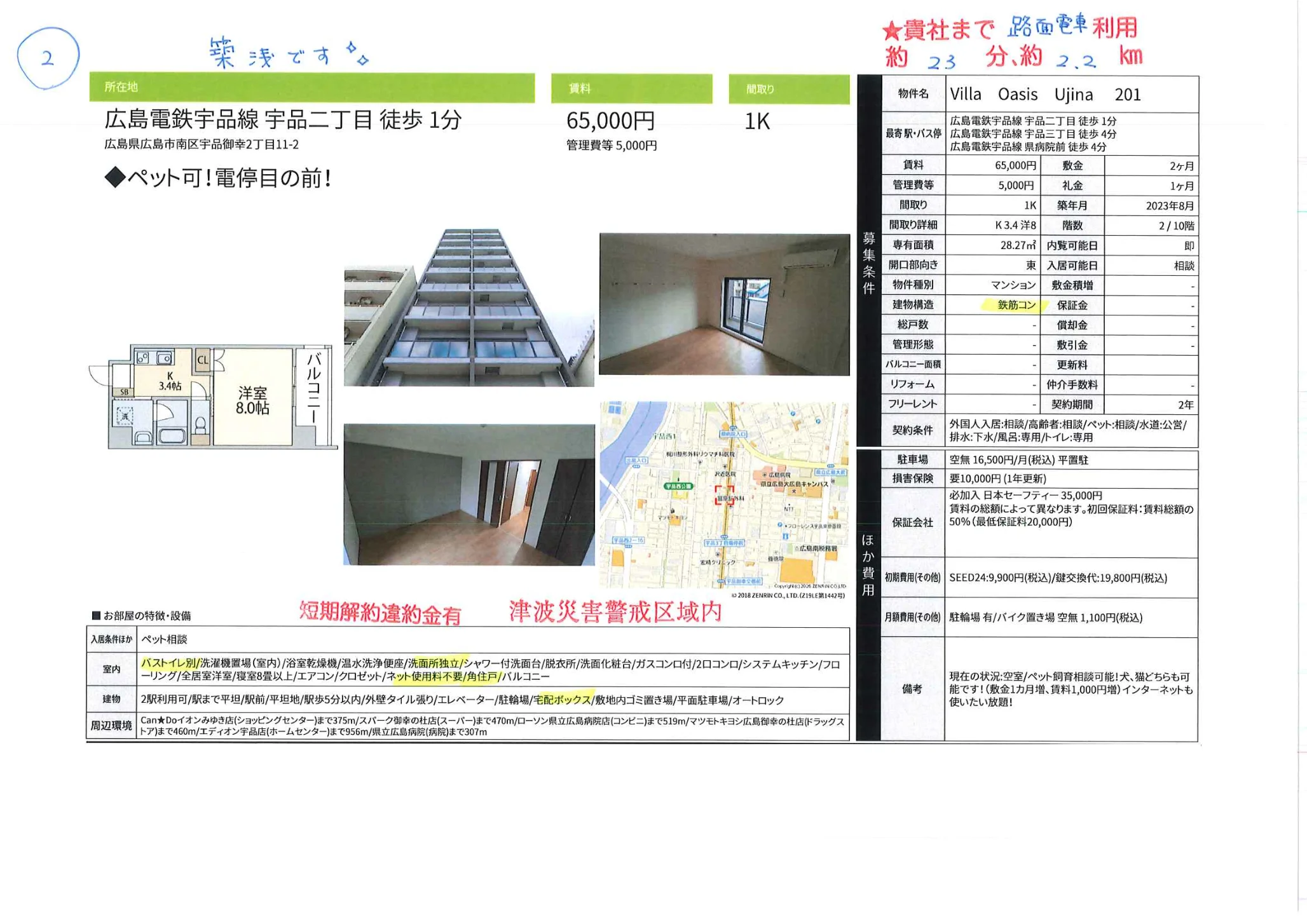| アクセス | 宇品二丁目 (徒歩1分) 宇品三丁目 (徒歩4分) 県病院前 (徒歩4分) |