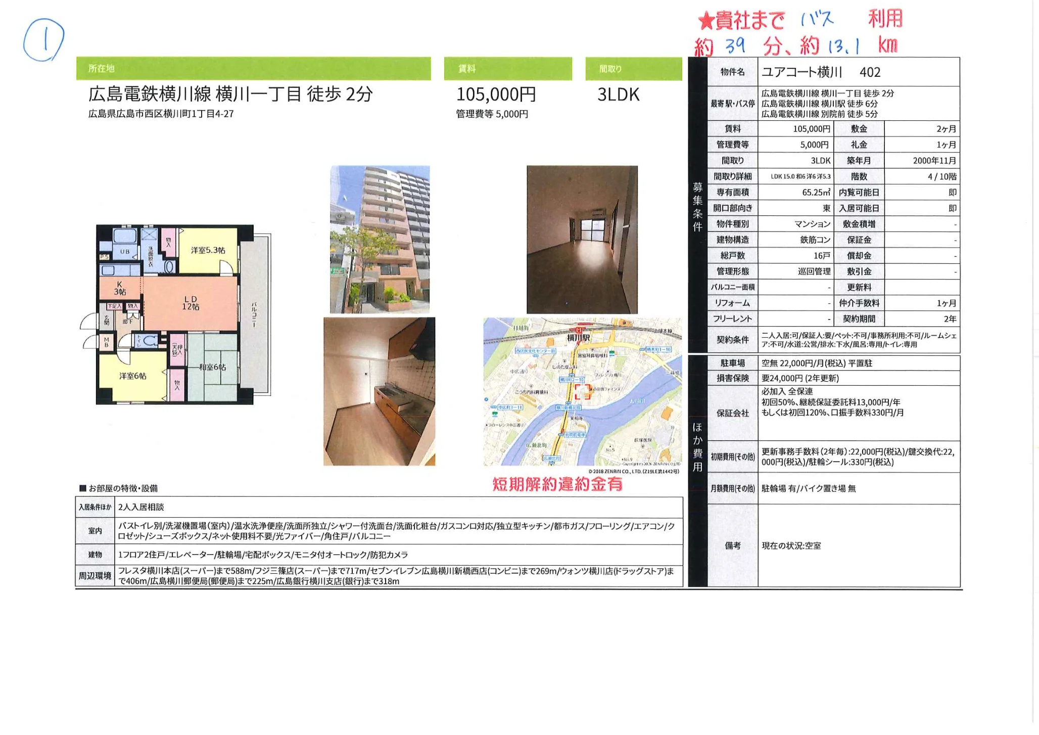 | アクセス | 横川一丁目 (徒歩2分) 横川駅 (徒歩6分) 別院前 (徒歩5分) |