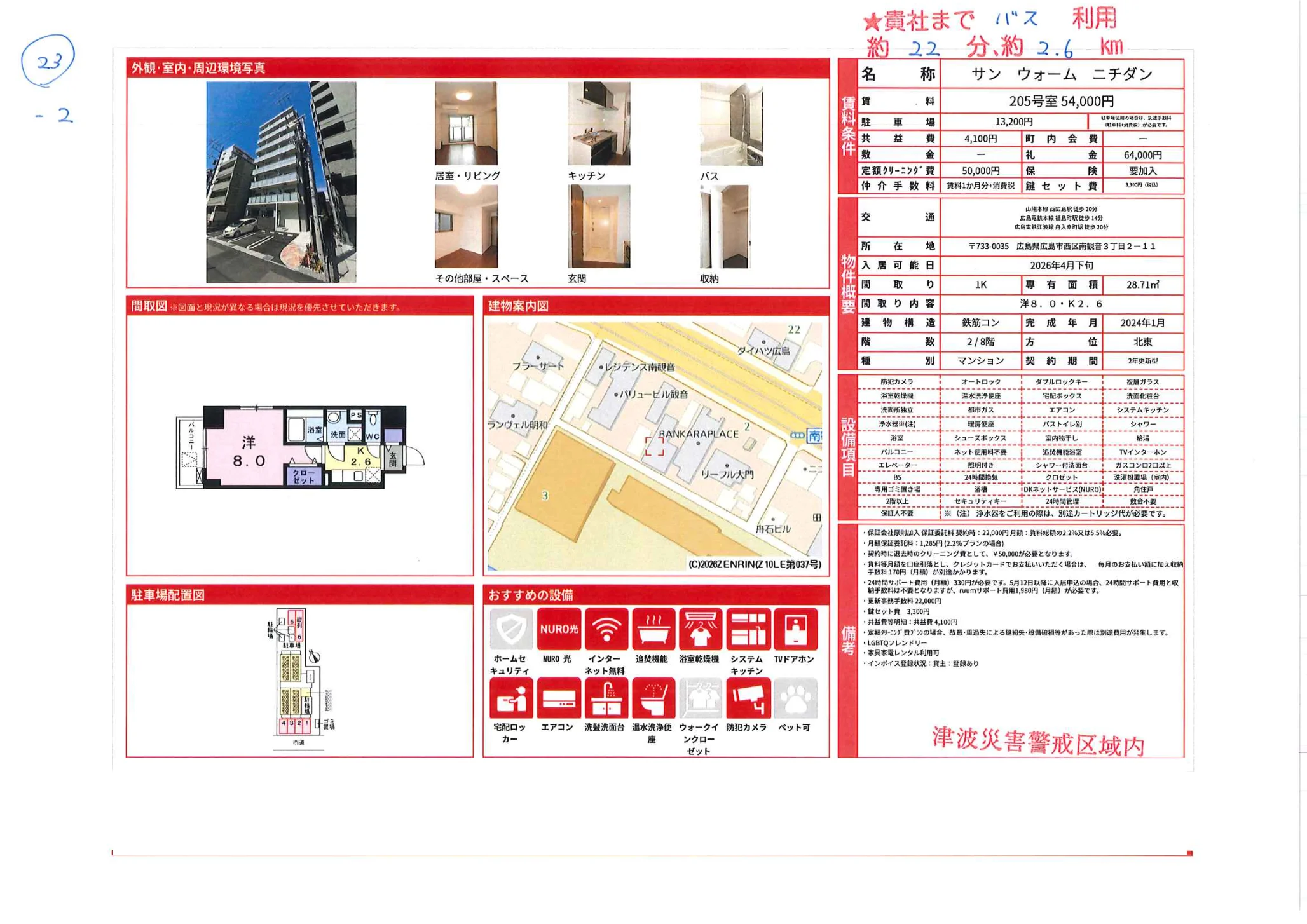 | アクセス | 20-minute walk to Nyuuraku Station (徒歩20分) 14-minute walk to Machiuchi Station (徒歩14分) |