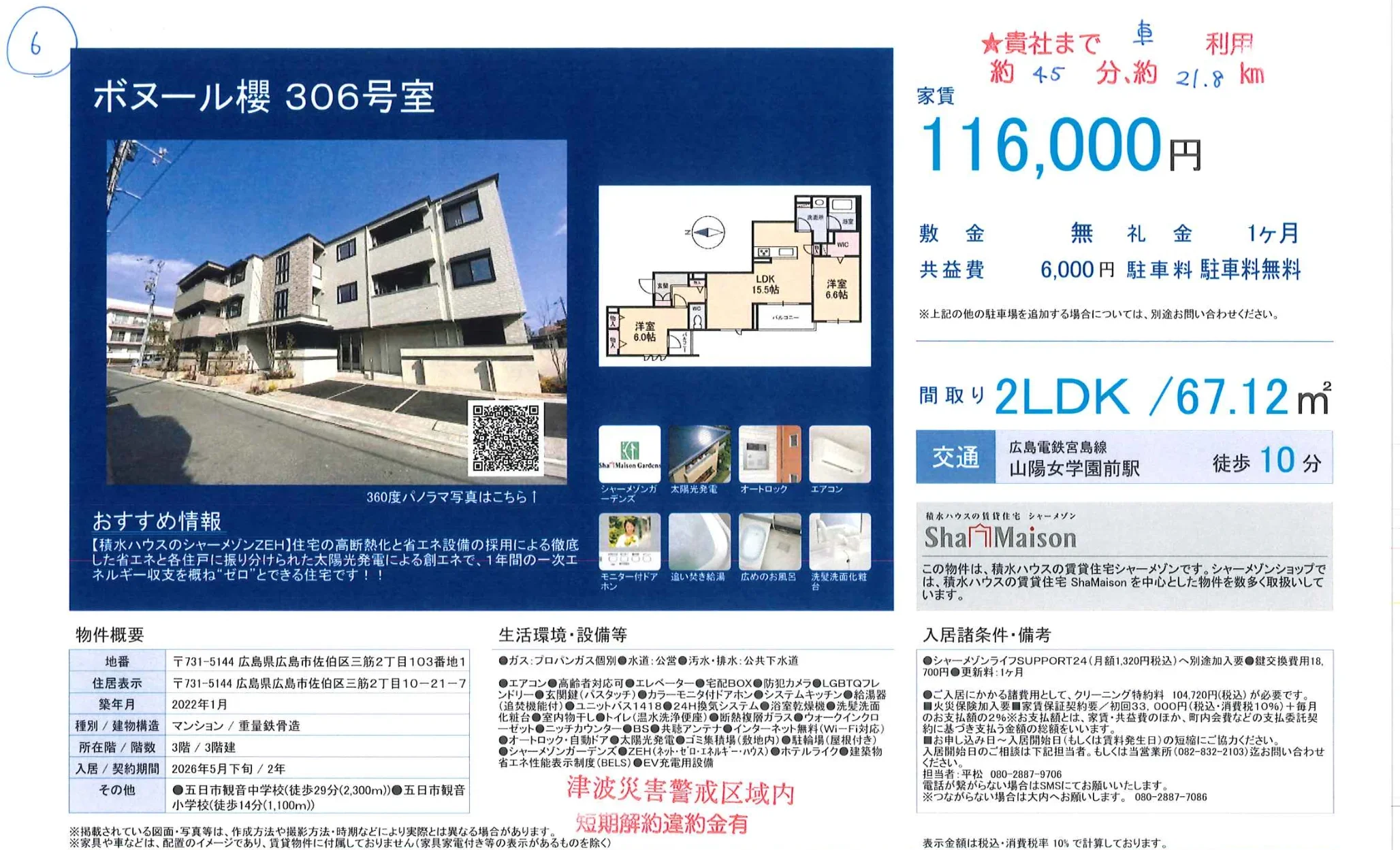 | 物件名 | ボヌール櫻 306号室 306号 |