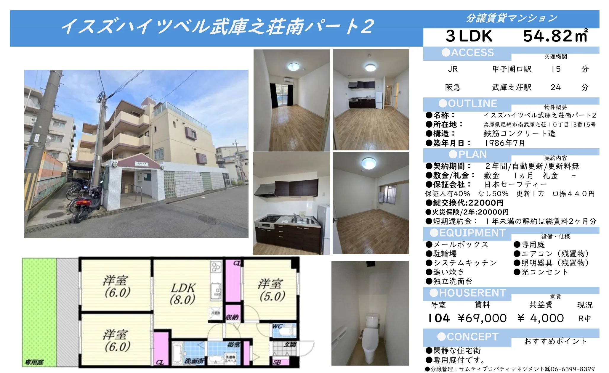 | 物件名 | イスズハイツベル武庫之荘南パート2 104号 |
