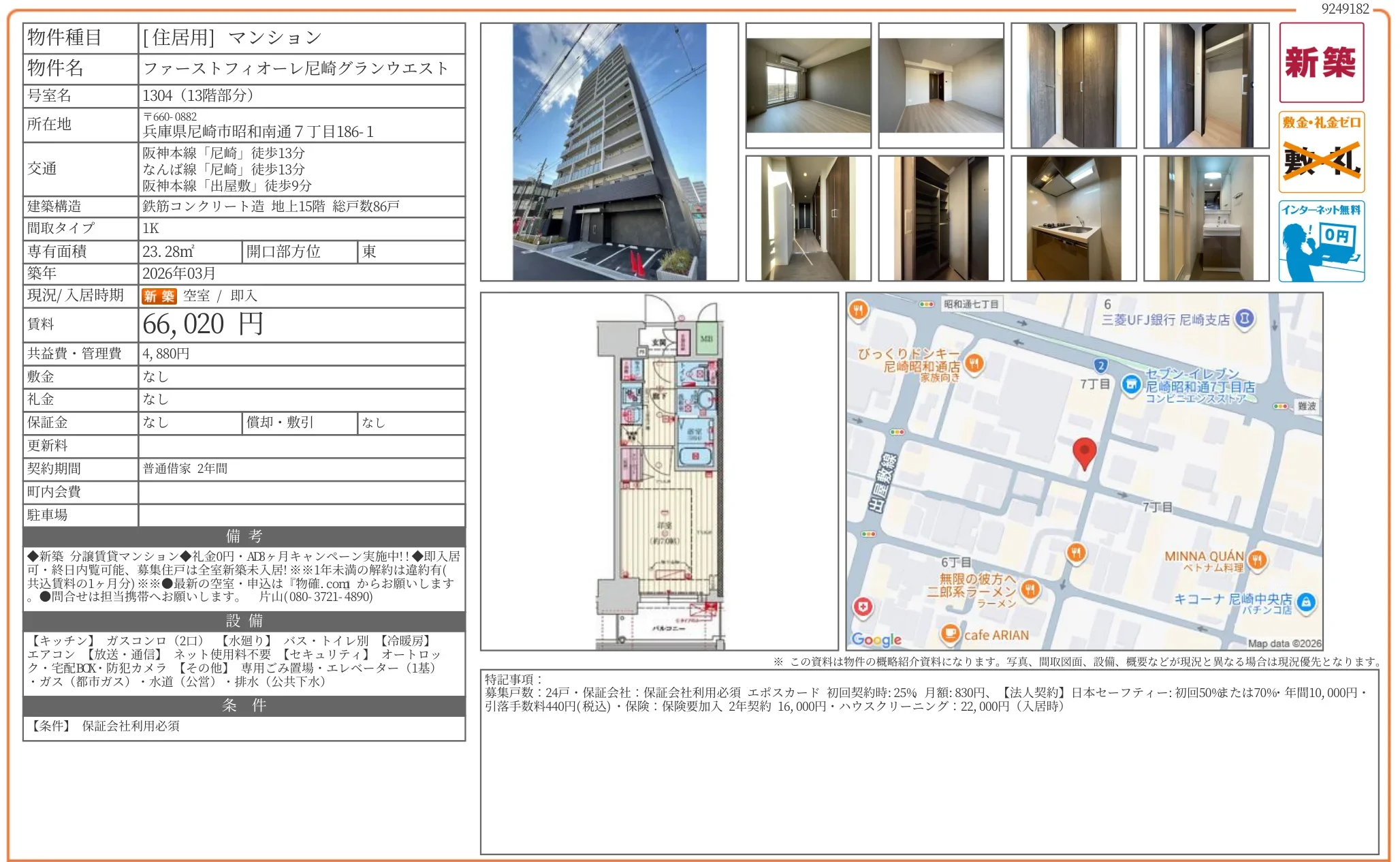| 物件名 | ファーストフィオーレ尼崎グランウエスト 1304 |