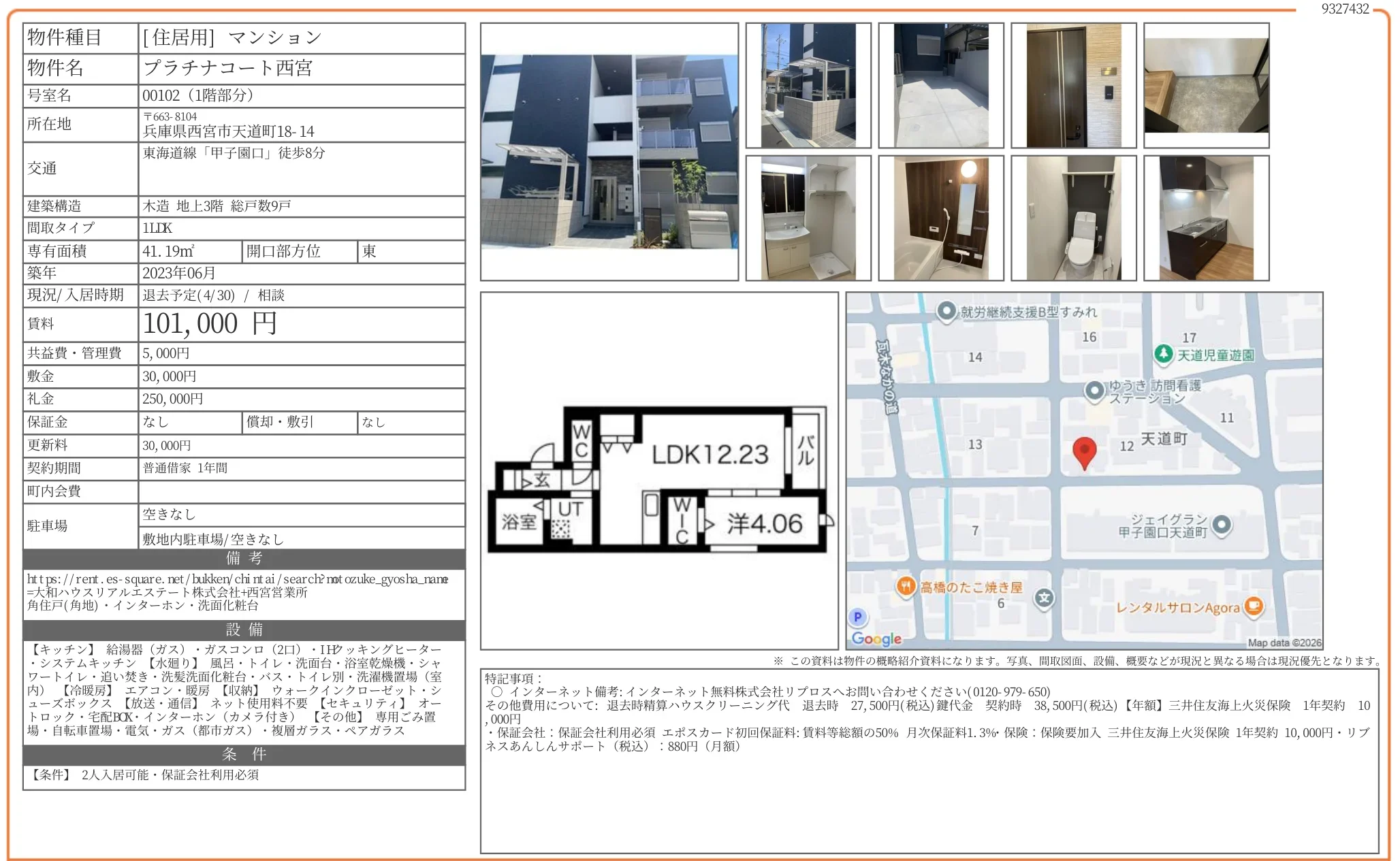 | 現況詳細 | 退去予定(4/30)/相談 |