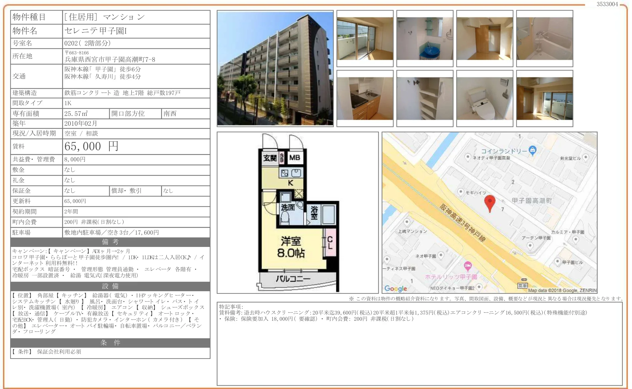 | 物件名 | セレニテ甲子園I 0202 |