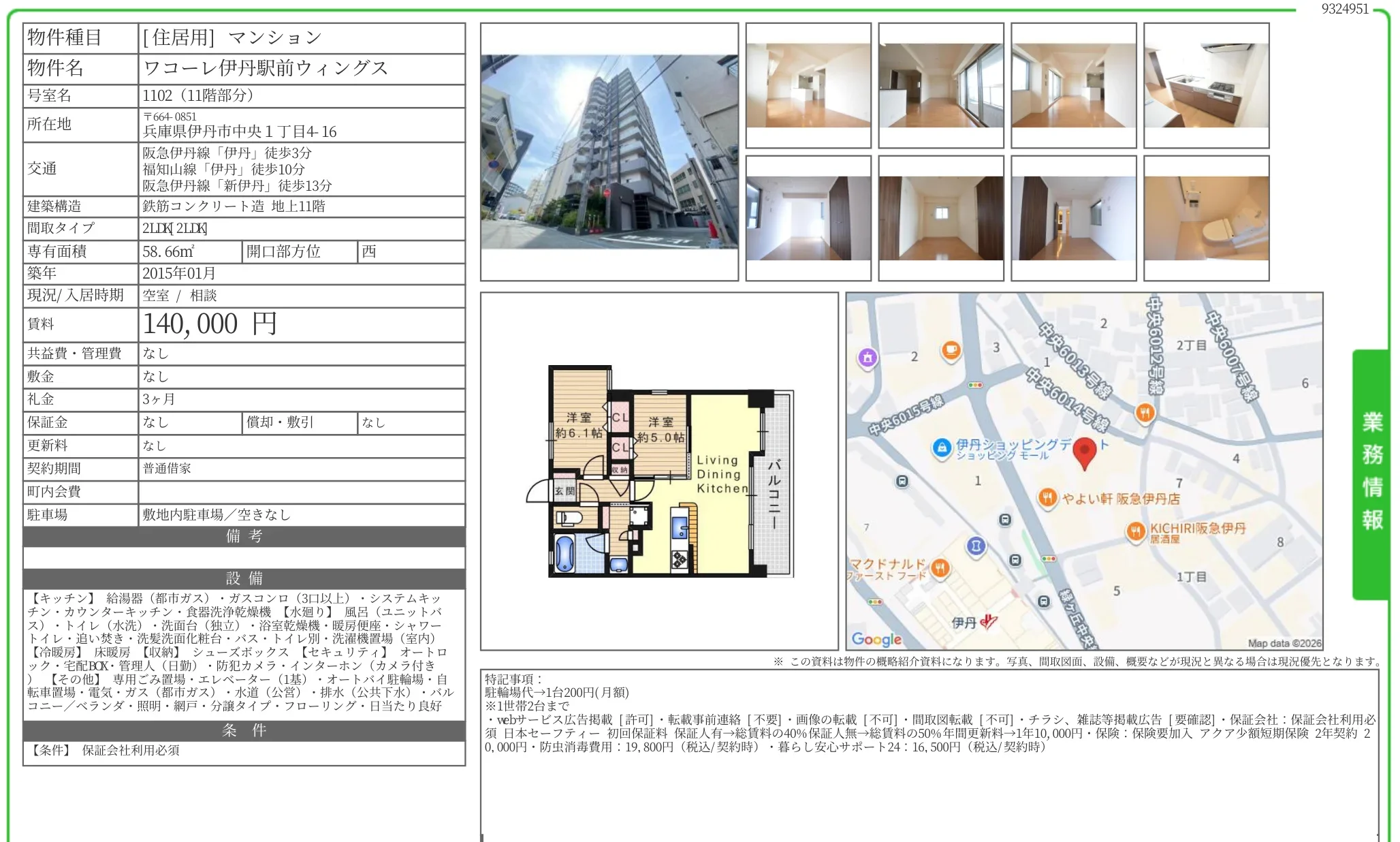 | 物件名 | ワコーレ伊丹駅前ウィングス 1102 |