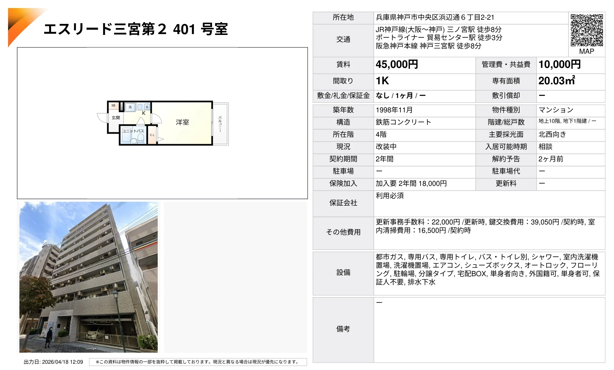| 物件名 | エスリード三宮第2401号室 2401号 |