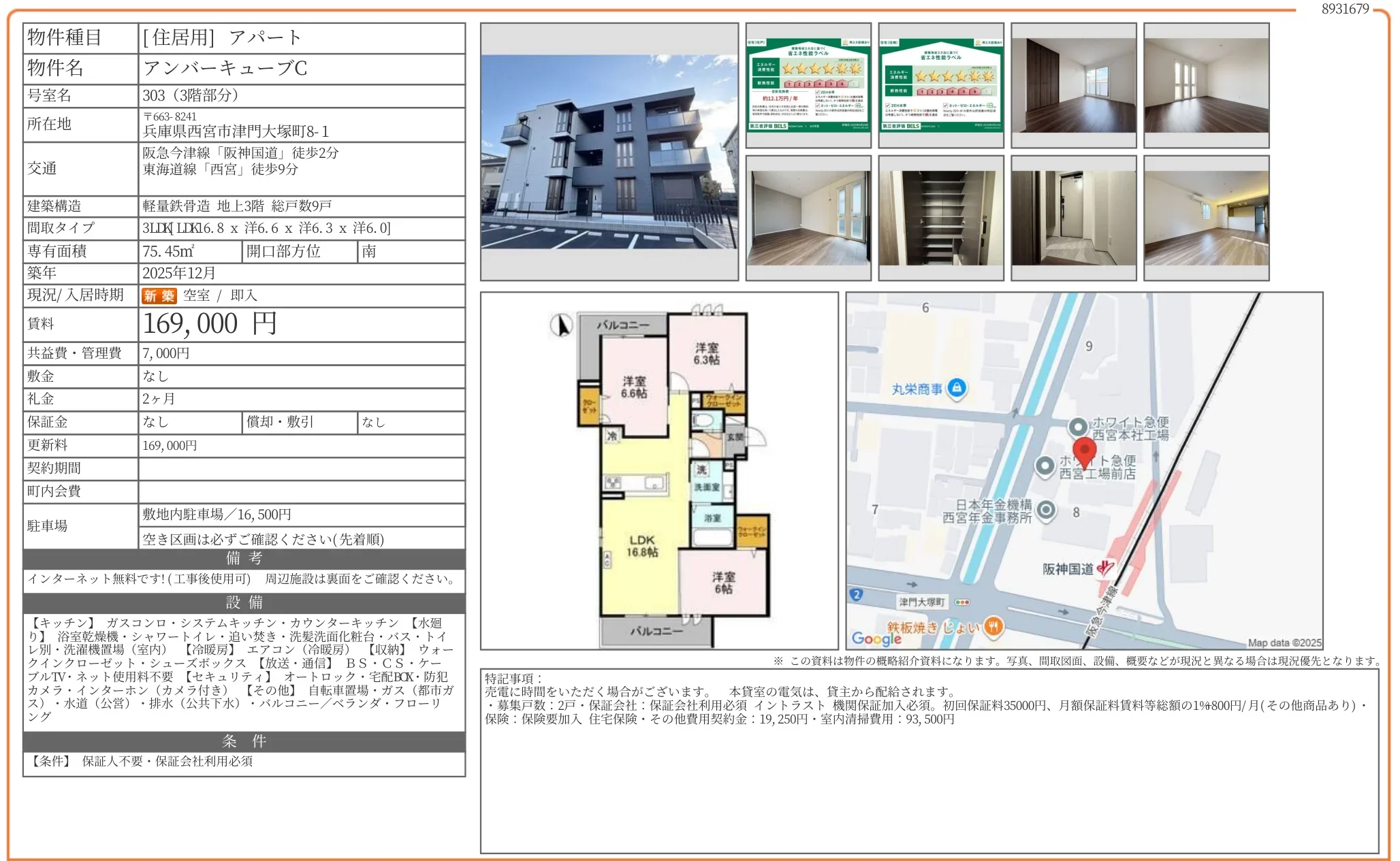 | 賃料 | 16.9万円 |