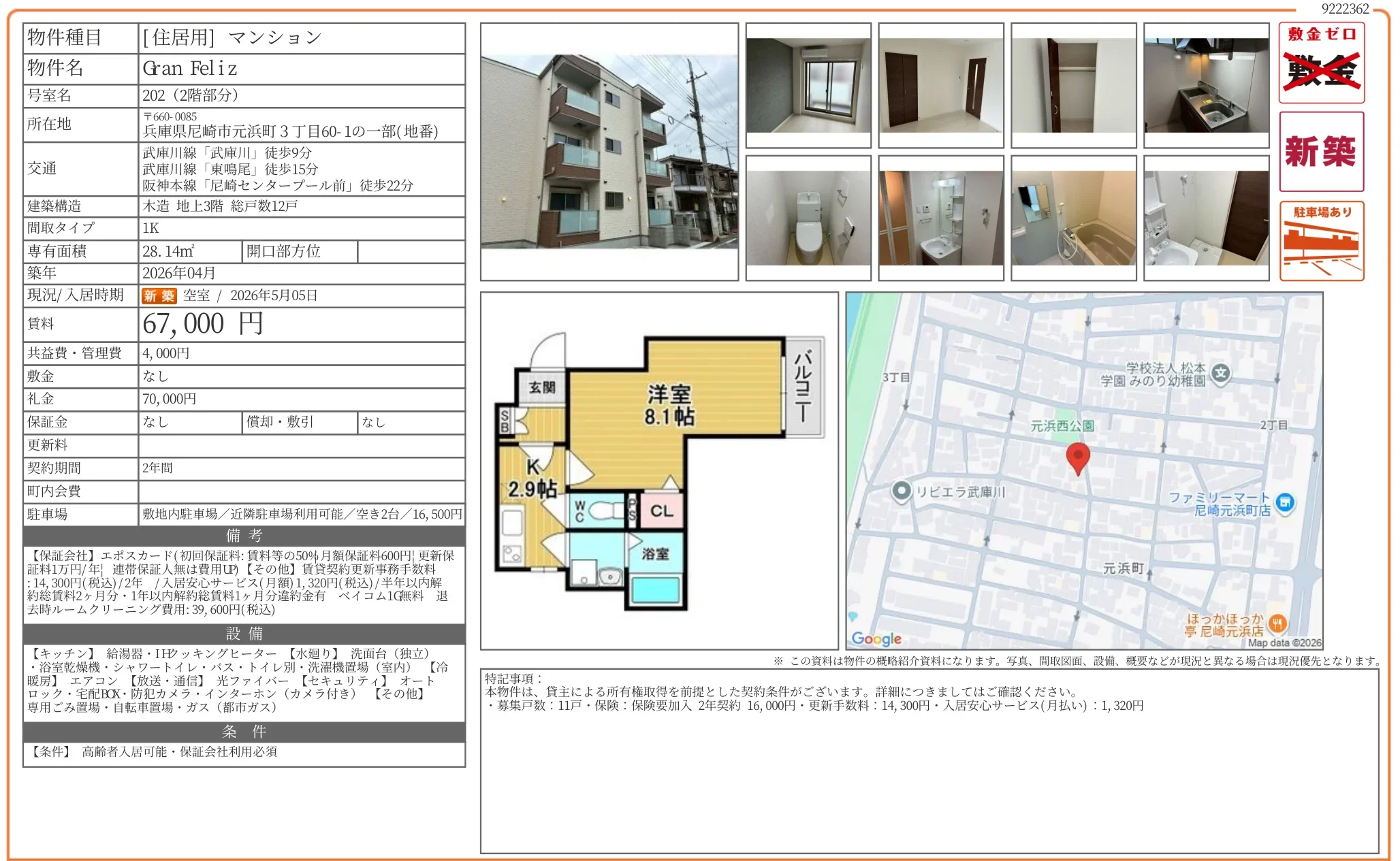 | アクセス | 武庫川 (徒歩9分) 東鳴尾 (徒歩15分) 尼崎センタープール前 (徒歩22分) |
