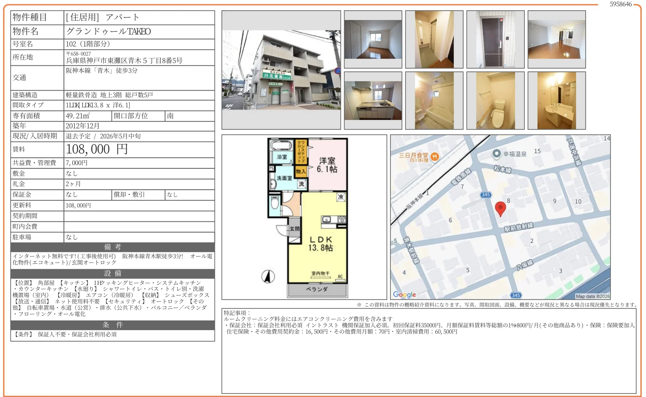 | 引渡時期 | 退去予定/ 2026年5月中旬 |