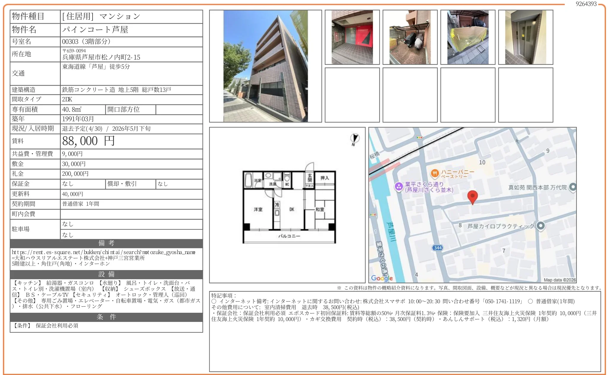 | 物件名 | パインコート芦屋 00303 |
