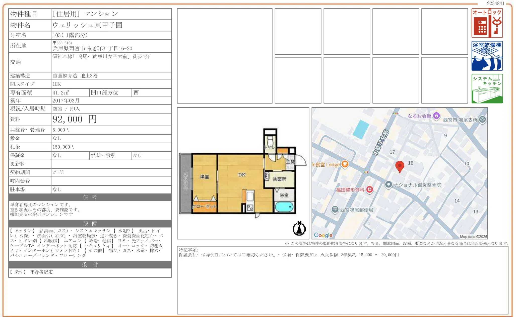| 物件名 | ウェリッシュ東甲子園 103 |