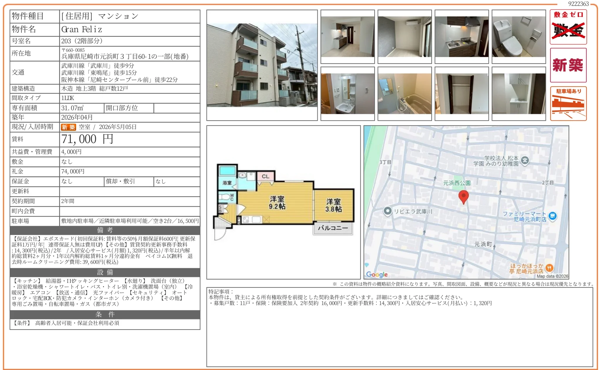 | 礼金 | 74000 |