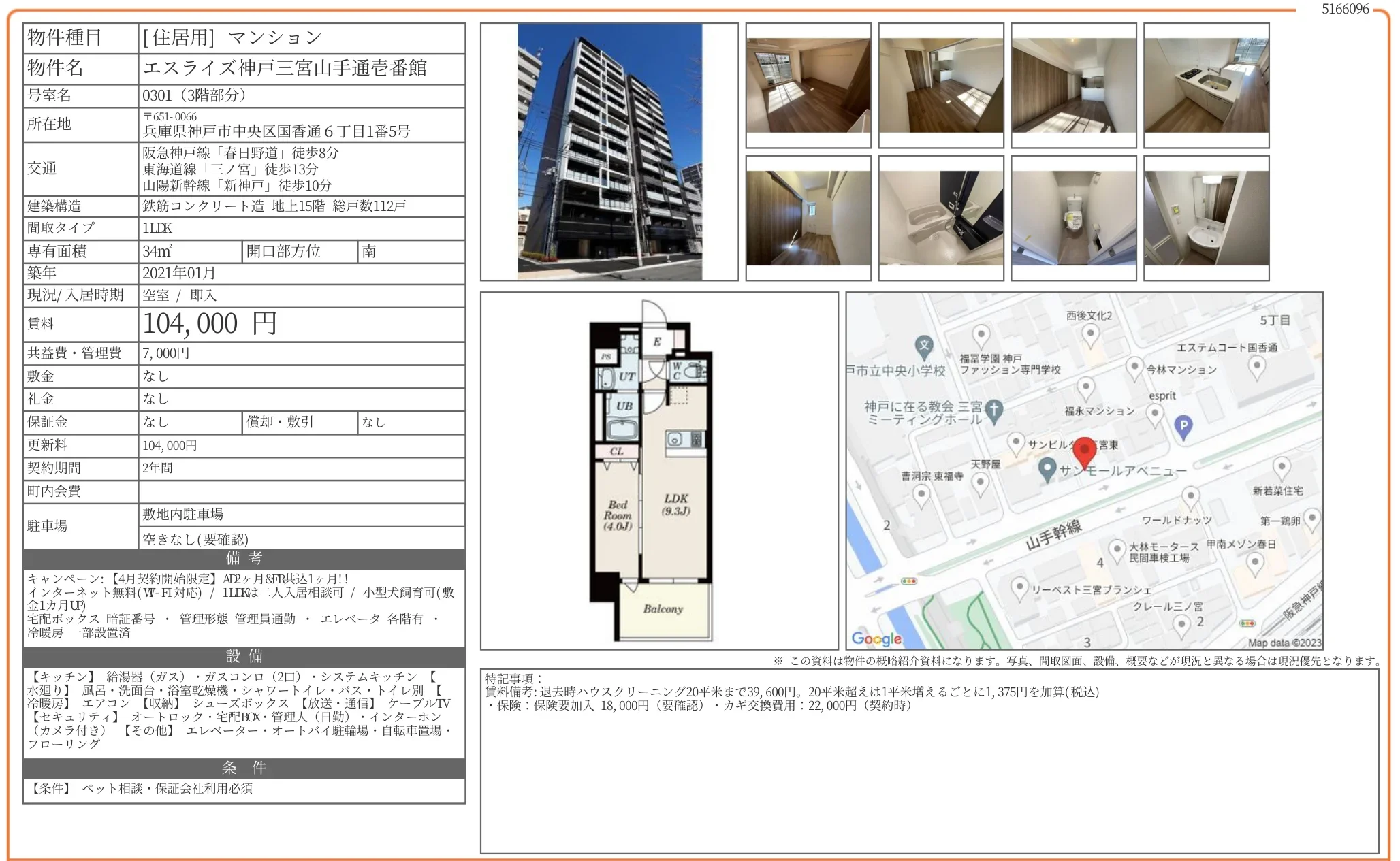 | 物件名 | エスライズ神戸三宮山手通壱番館 0301 |