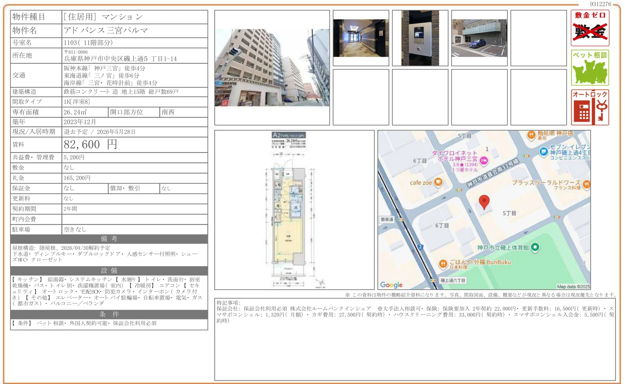 | 物件名 | アドバンス三宮パルマ 1103 |