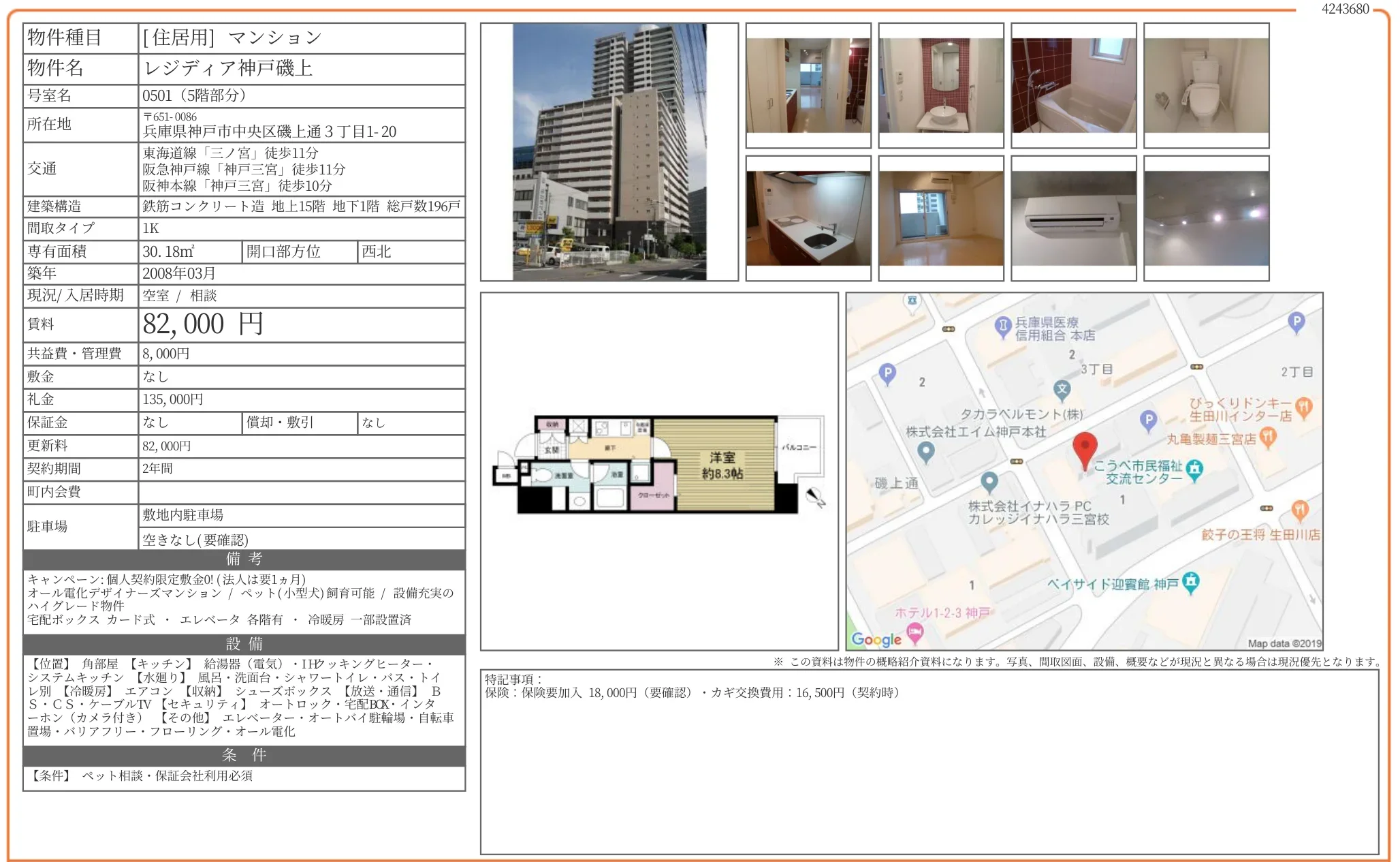 | 賃料 | 8.2万円 |