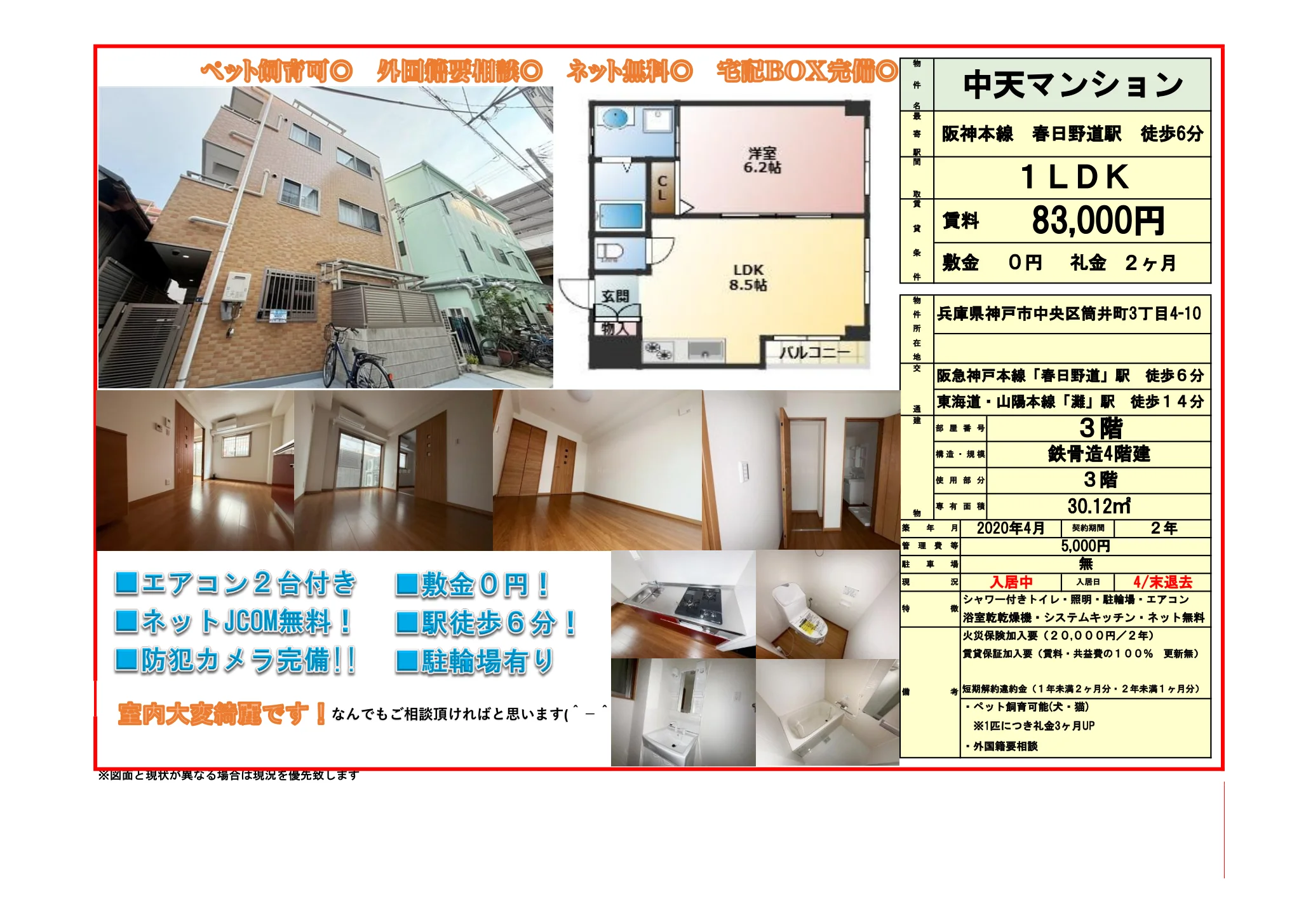 | アクセス | 春日野道駅 (徒歩6分) 灘駅 (徒歩14分) |