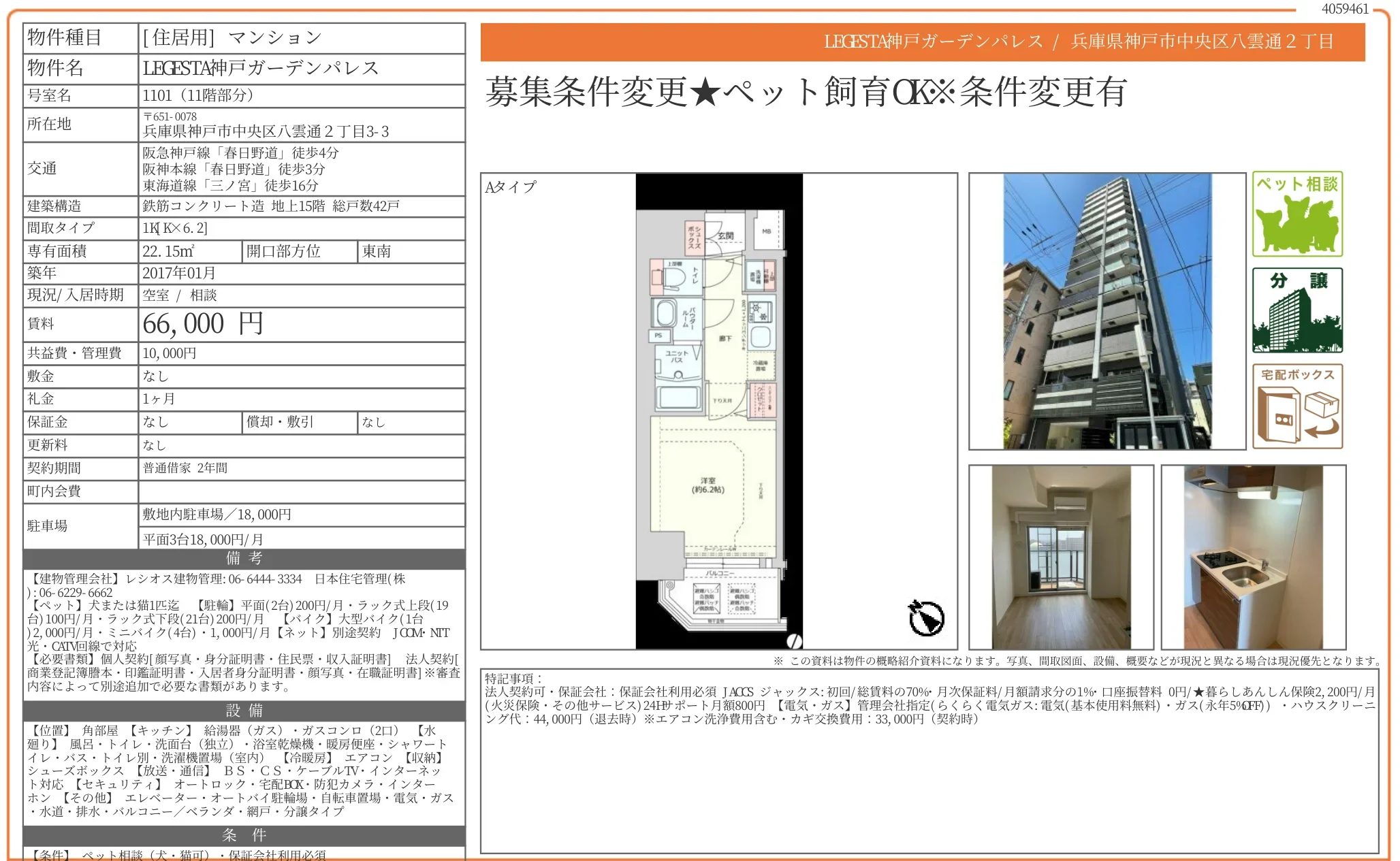 | 物件名 | LEGESTA神戸ガーデンパレス 1101 |