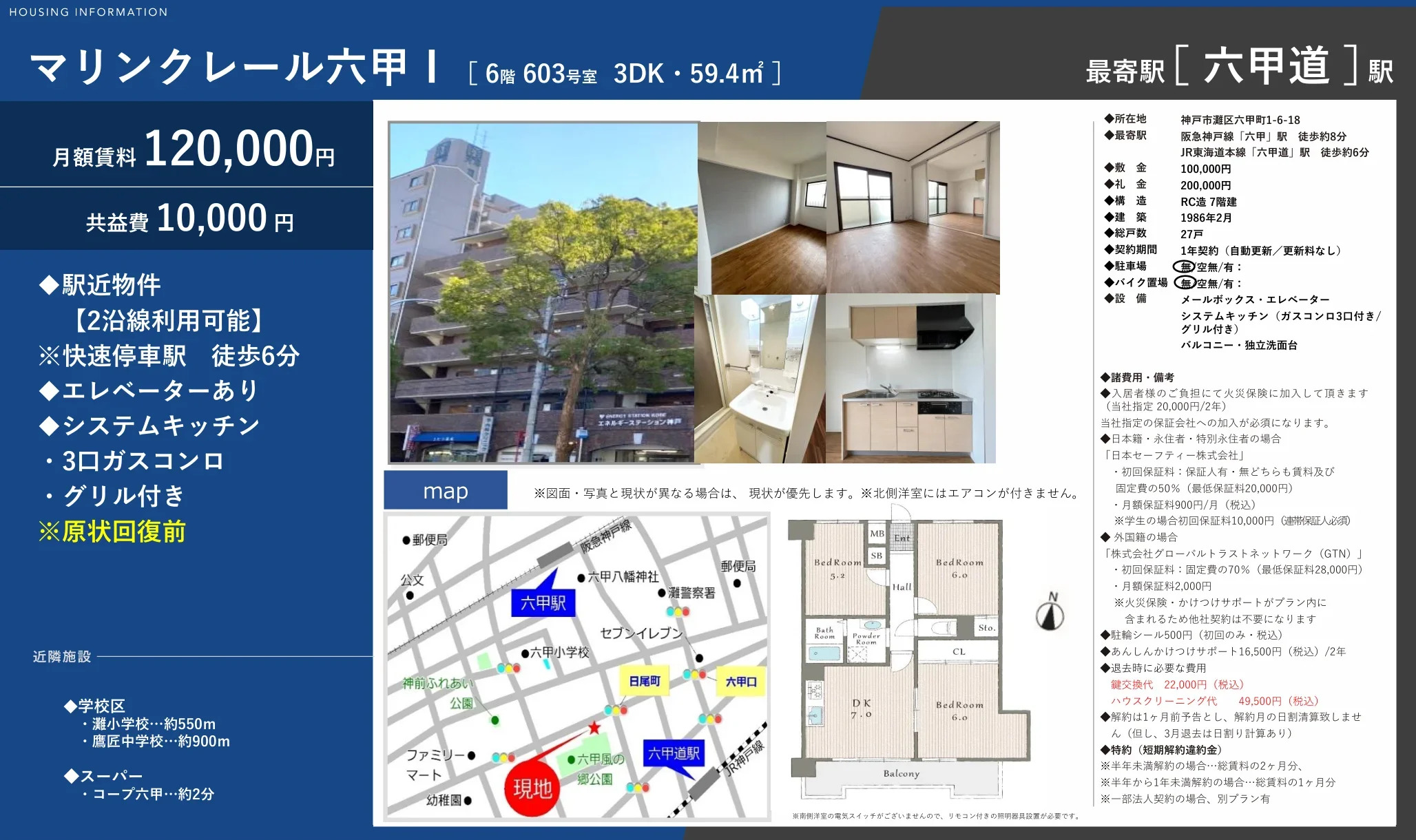 | アクセス | 六甲 (徒歩8分) 六甲道 (徒歩6分) |